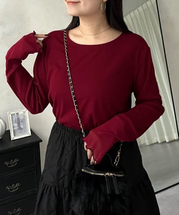10%OFFクーポン 10%OFFクーポン再入荷 予約 手洗い可 COLLAGE GALLARDAGALANTE 【速乾素材/ノンアイロン/とろみブラウス】ジャージ袖リブTブラウス ¥12,100