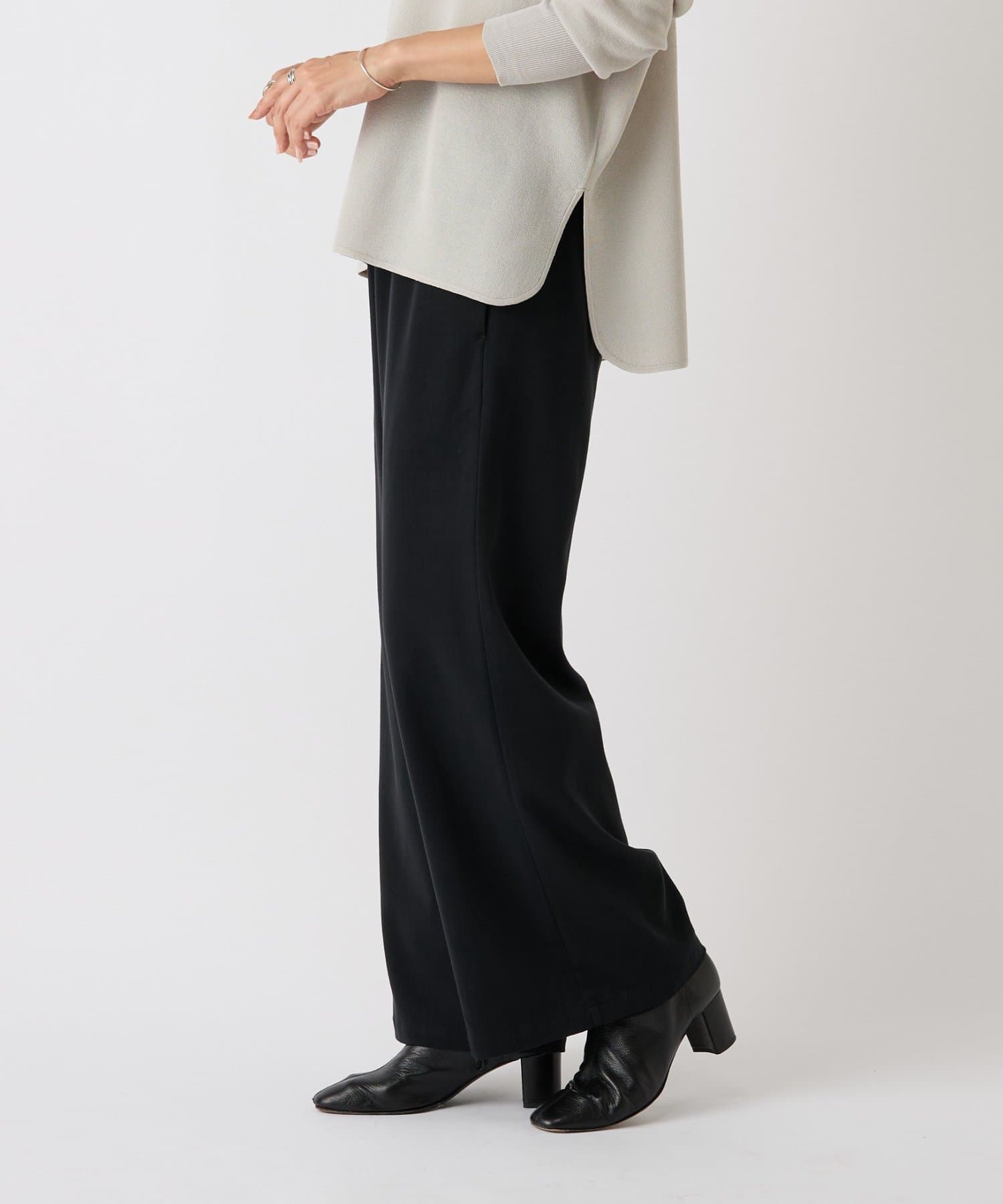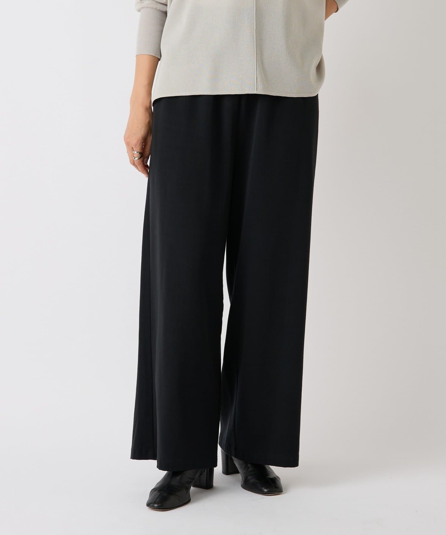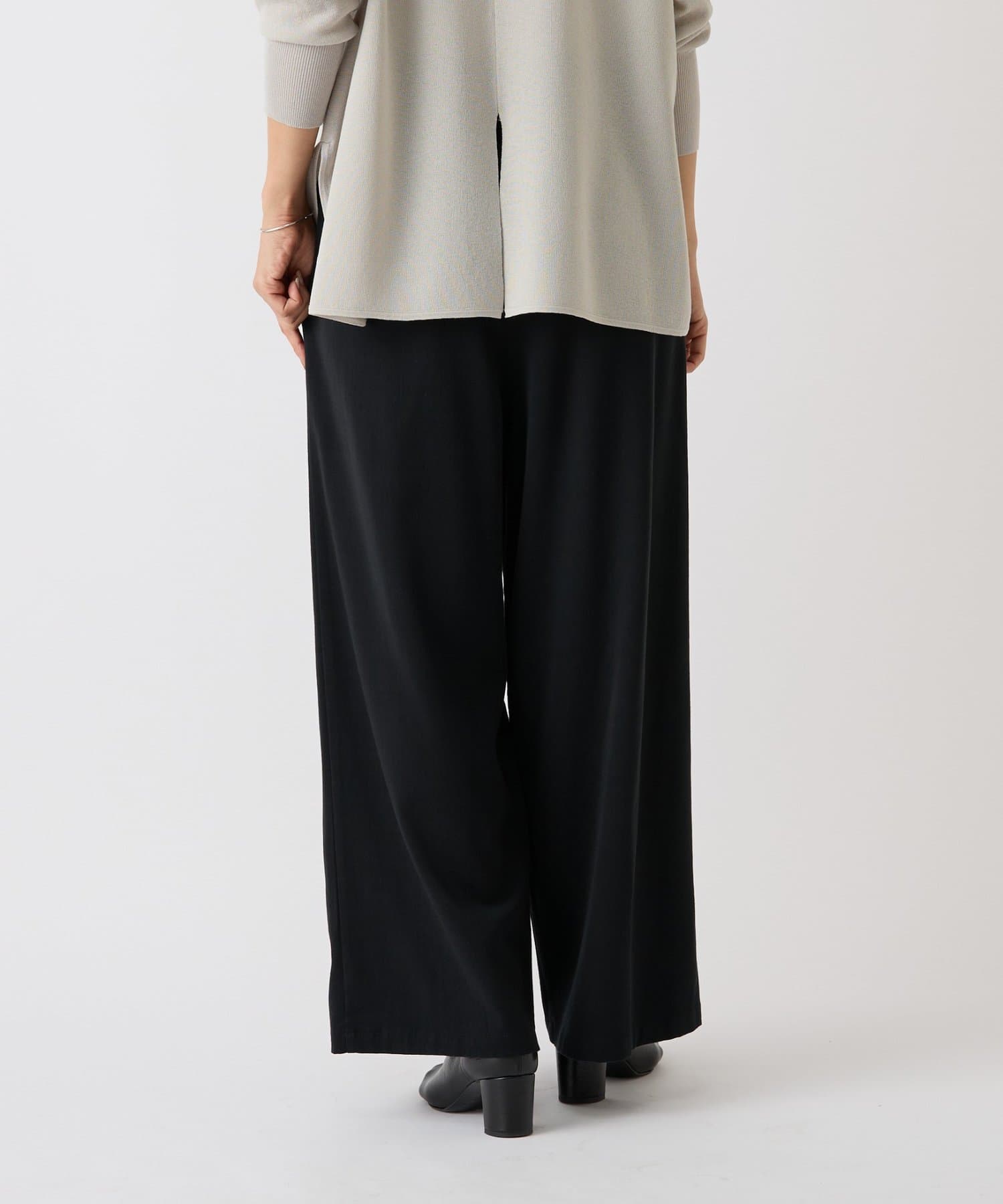 脚のラインを拾わないたっぷりワイドなデザインながら、太すぎないので綺麗なシルエットが生まれます。