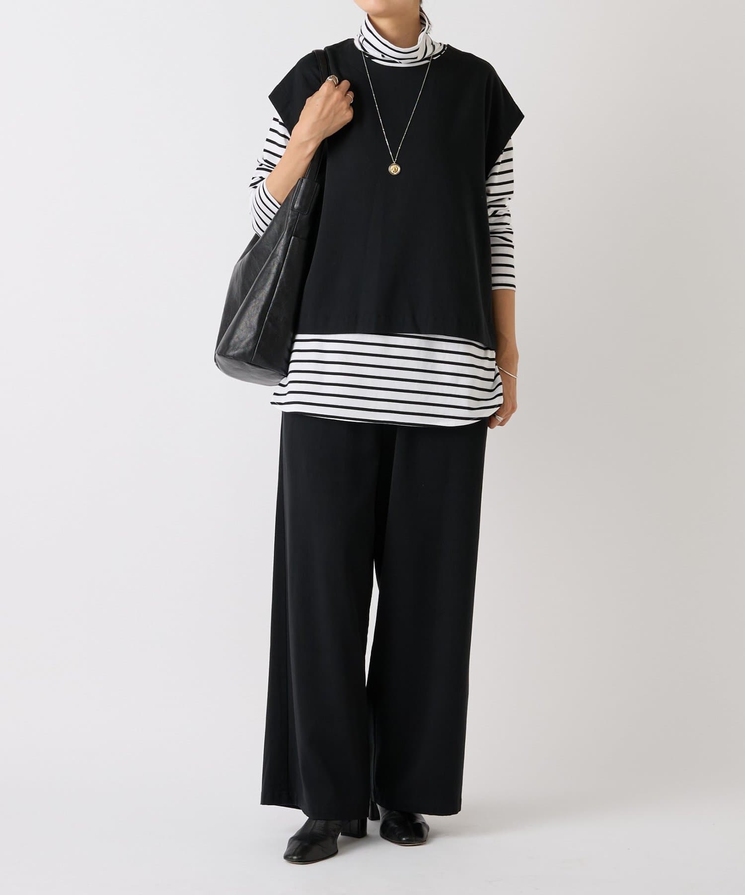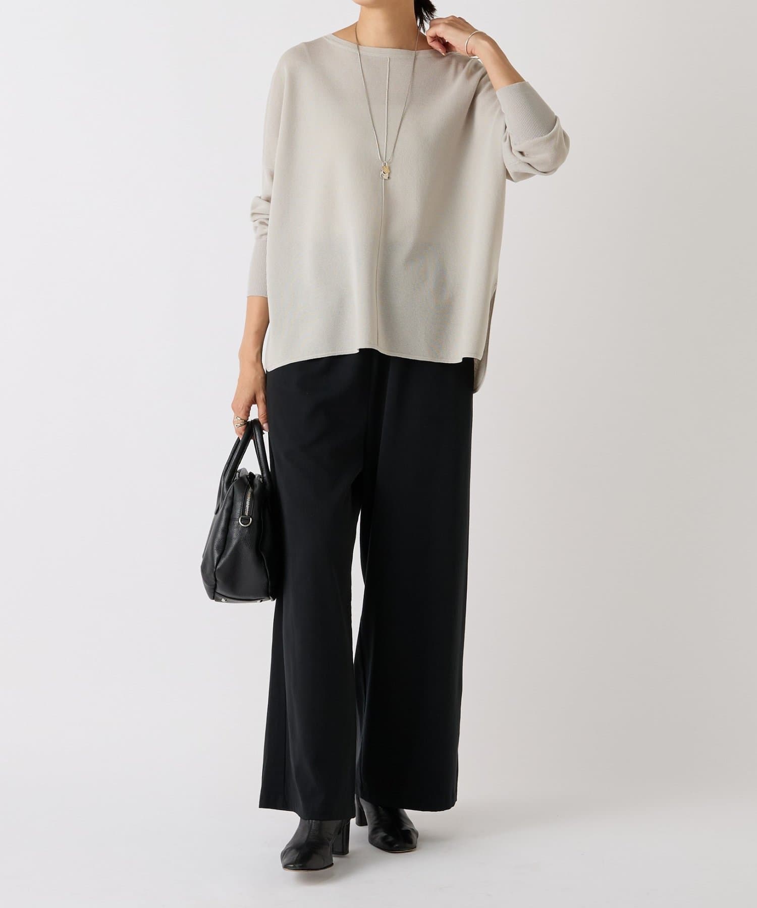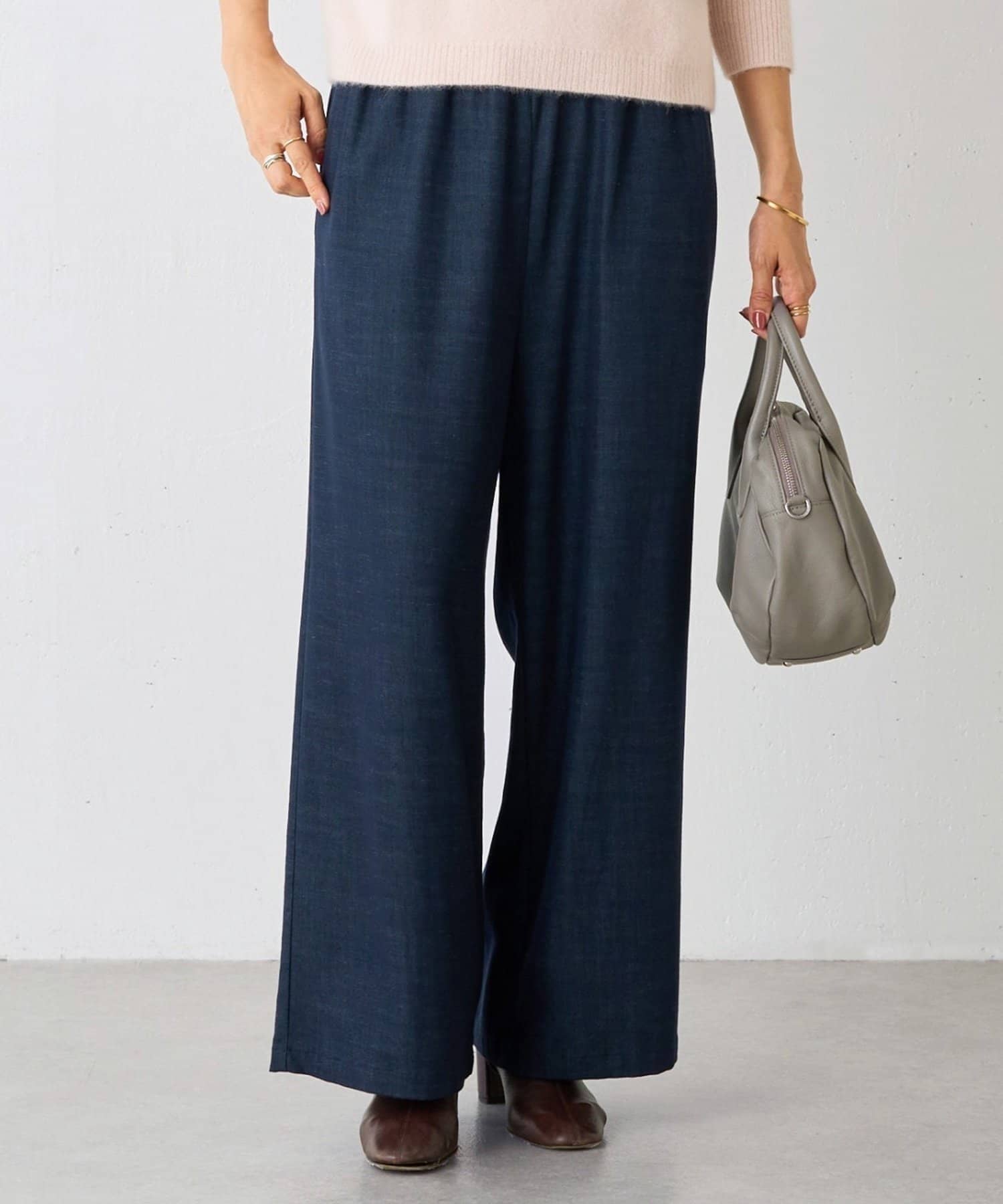 脚のラインを拾わないたっぷりワイドなデザインながら、太すぎないので綺麗なシルエットが生まれます。