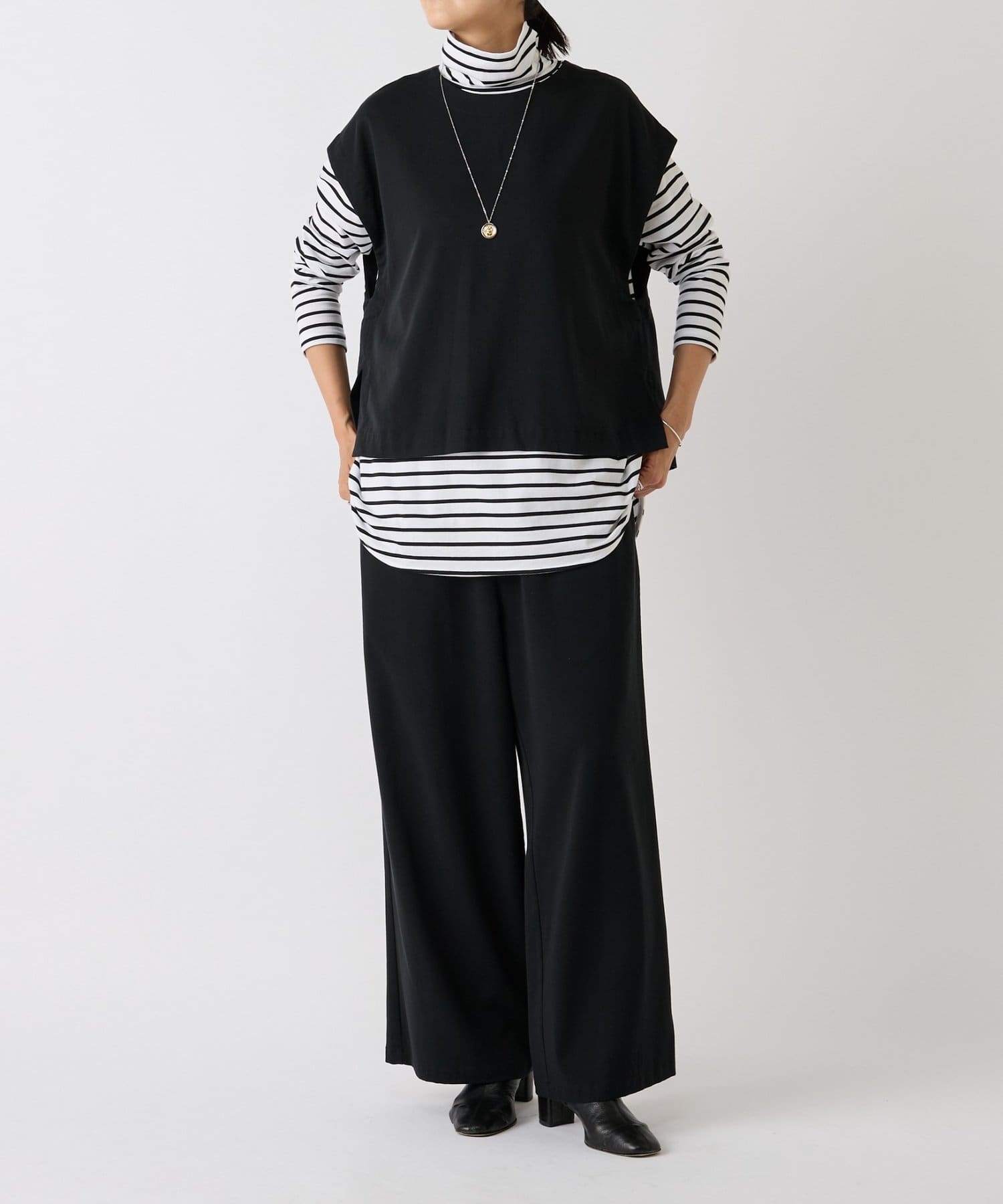 ブラック着用:同素材のベストでセットアップも◎ -