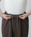 繊細な縦プリーツが、上品な光沢と陰影を生み出すフレアパンツ。