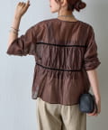 シアーティアード長袖ブラウス