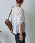 ふんわりと軽やかなシアー素材に、立体感のあるティアードデザインを施した長袖ブラウス。