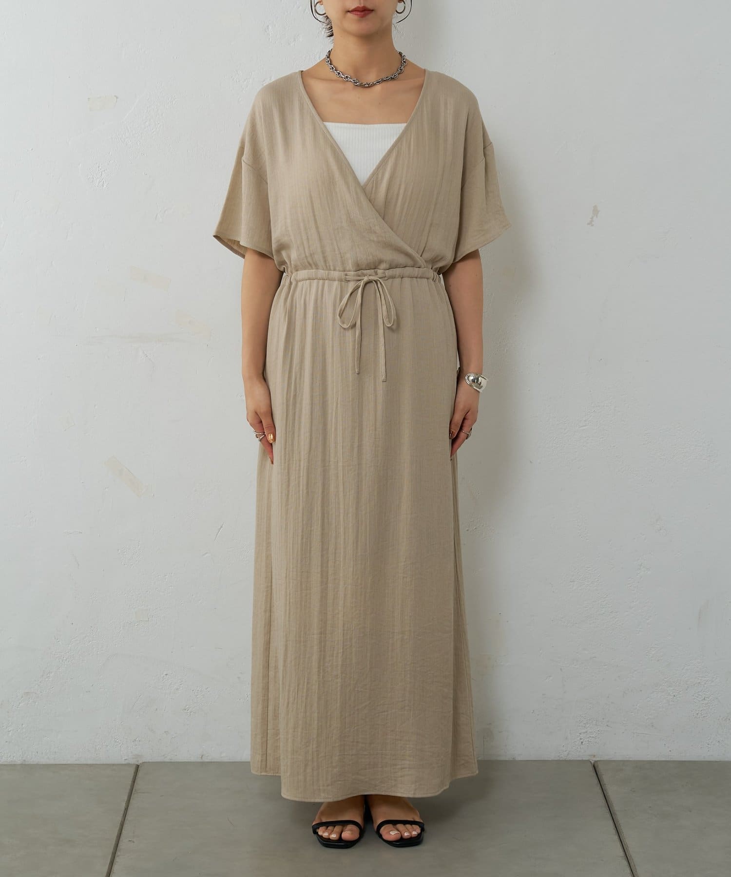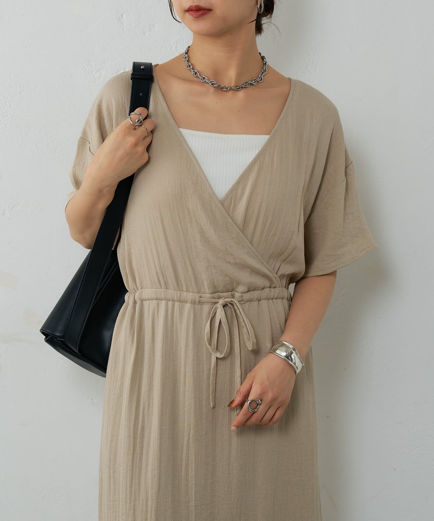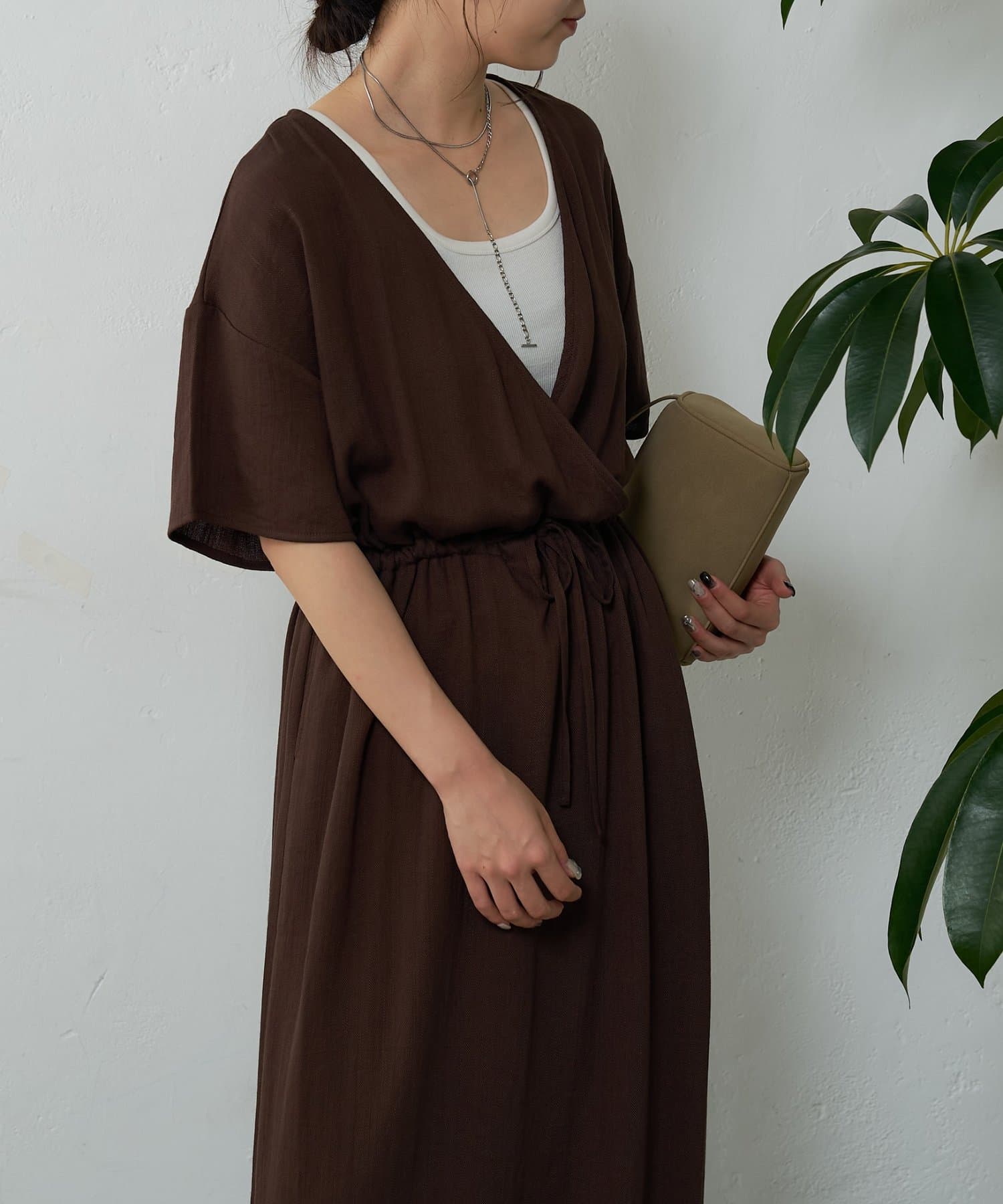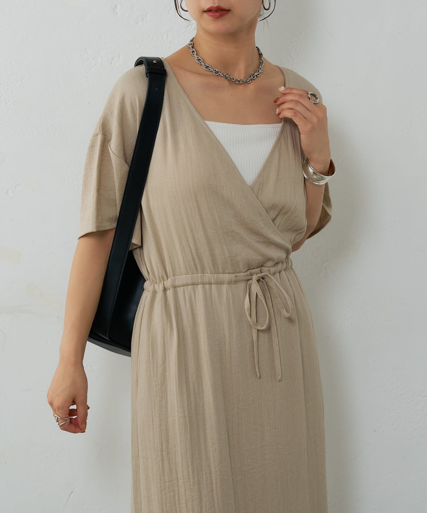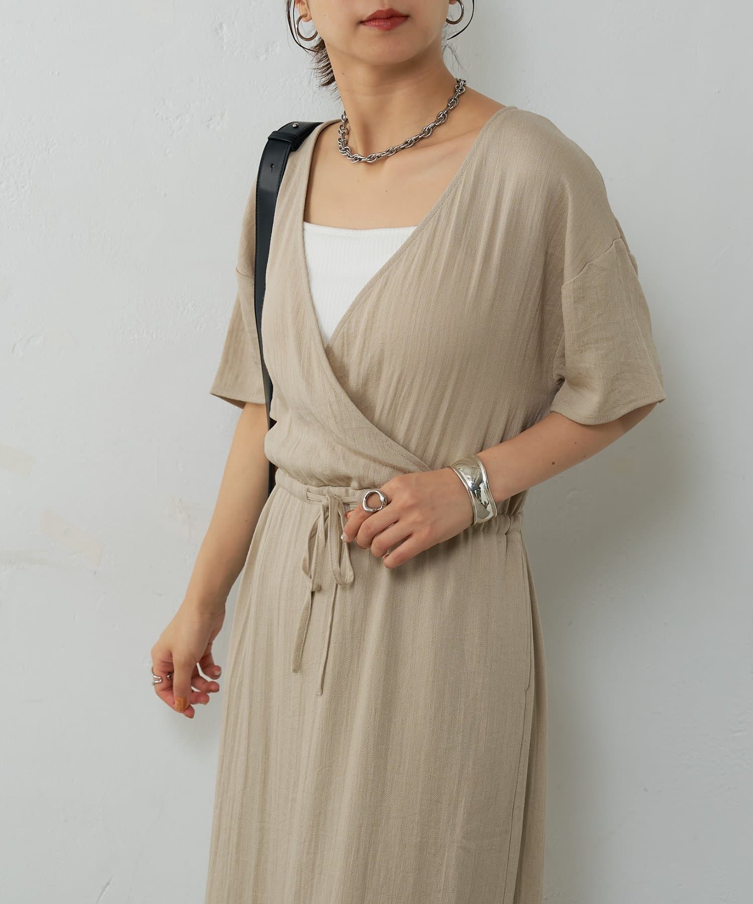 【一枚でサマ見え。リネンライクカシュクールワンピース】