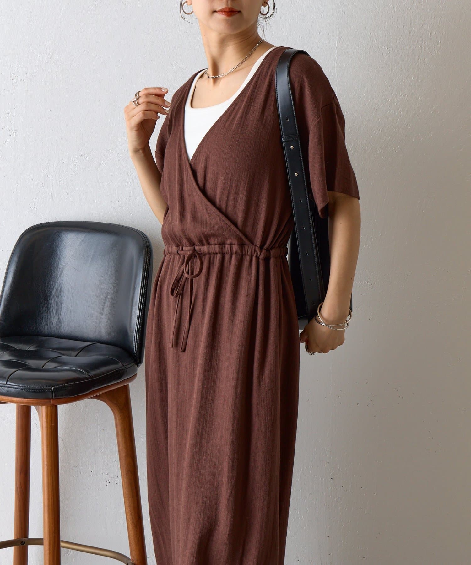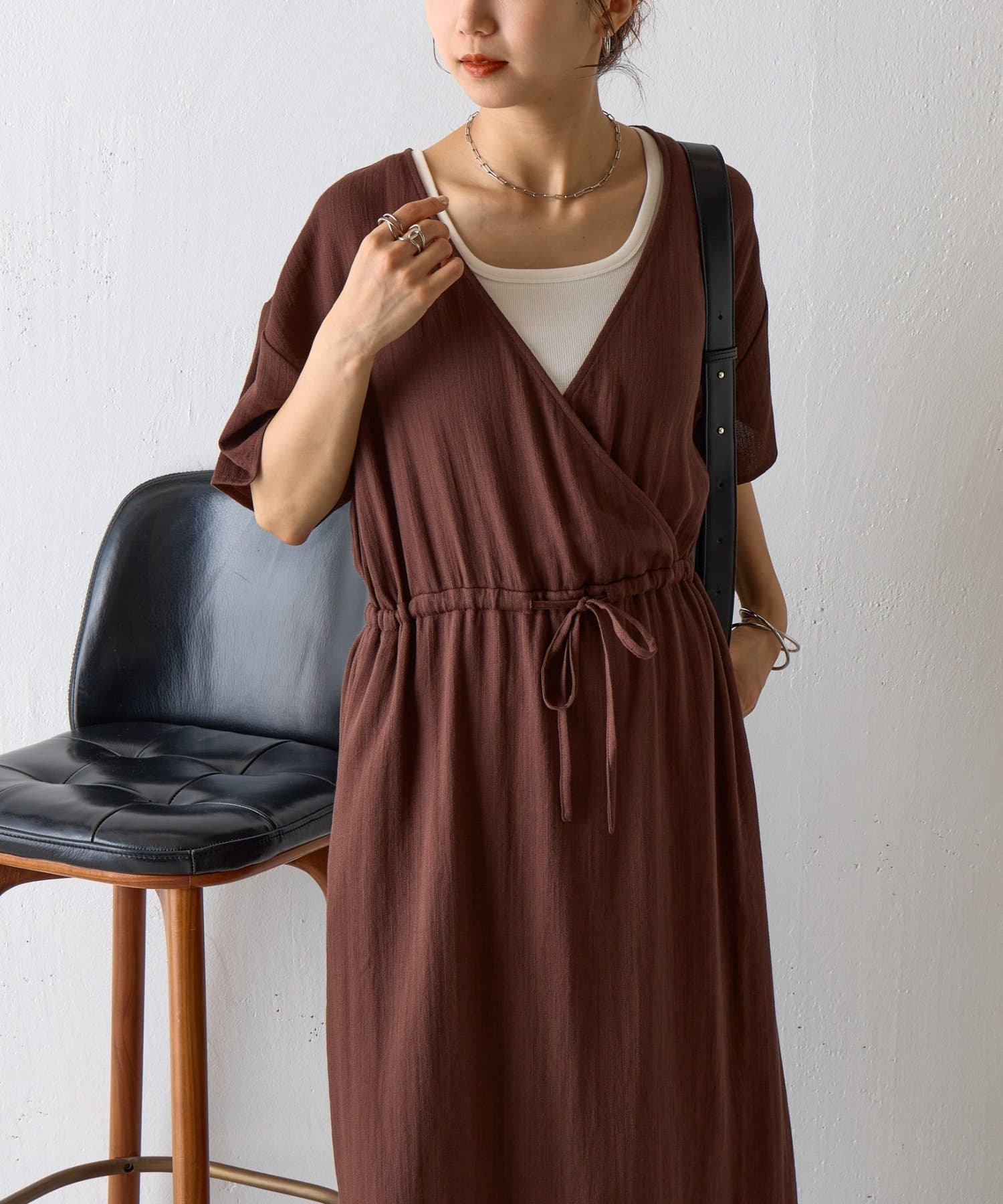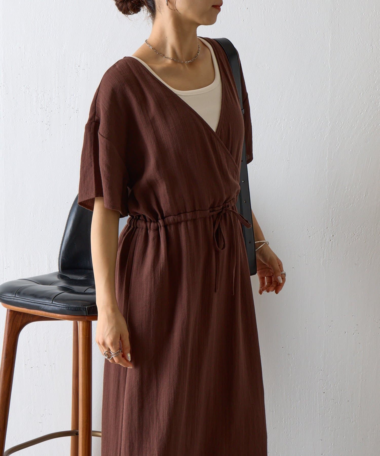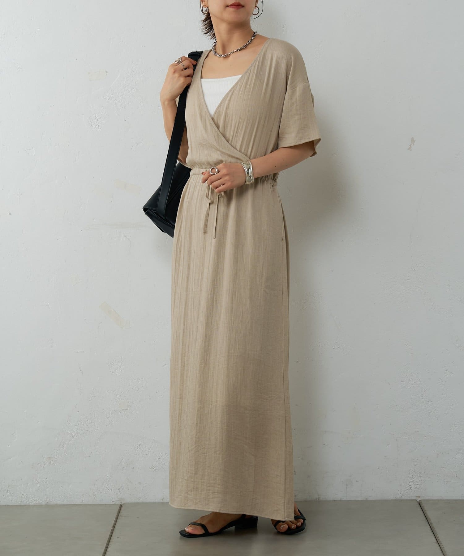 【一枚でサマ見え。リネンライクカシュクールワンピース】