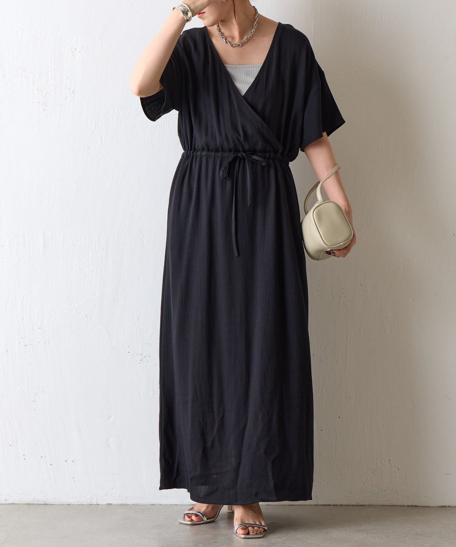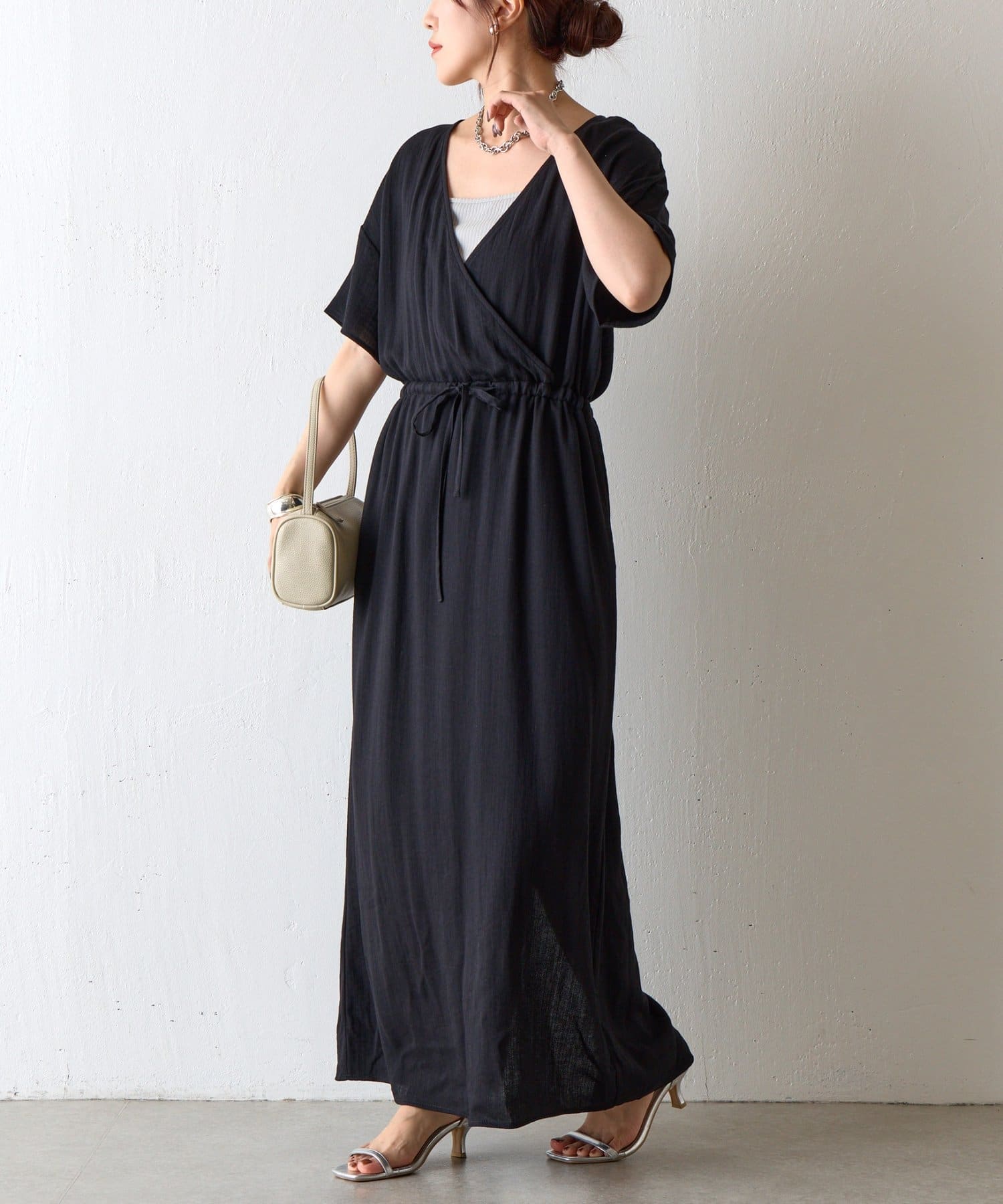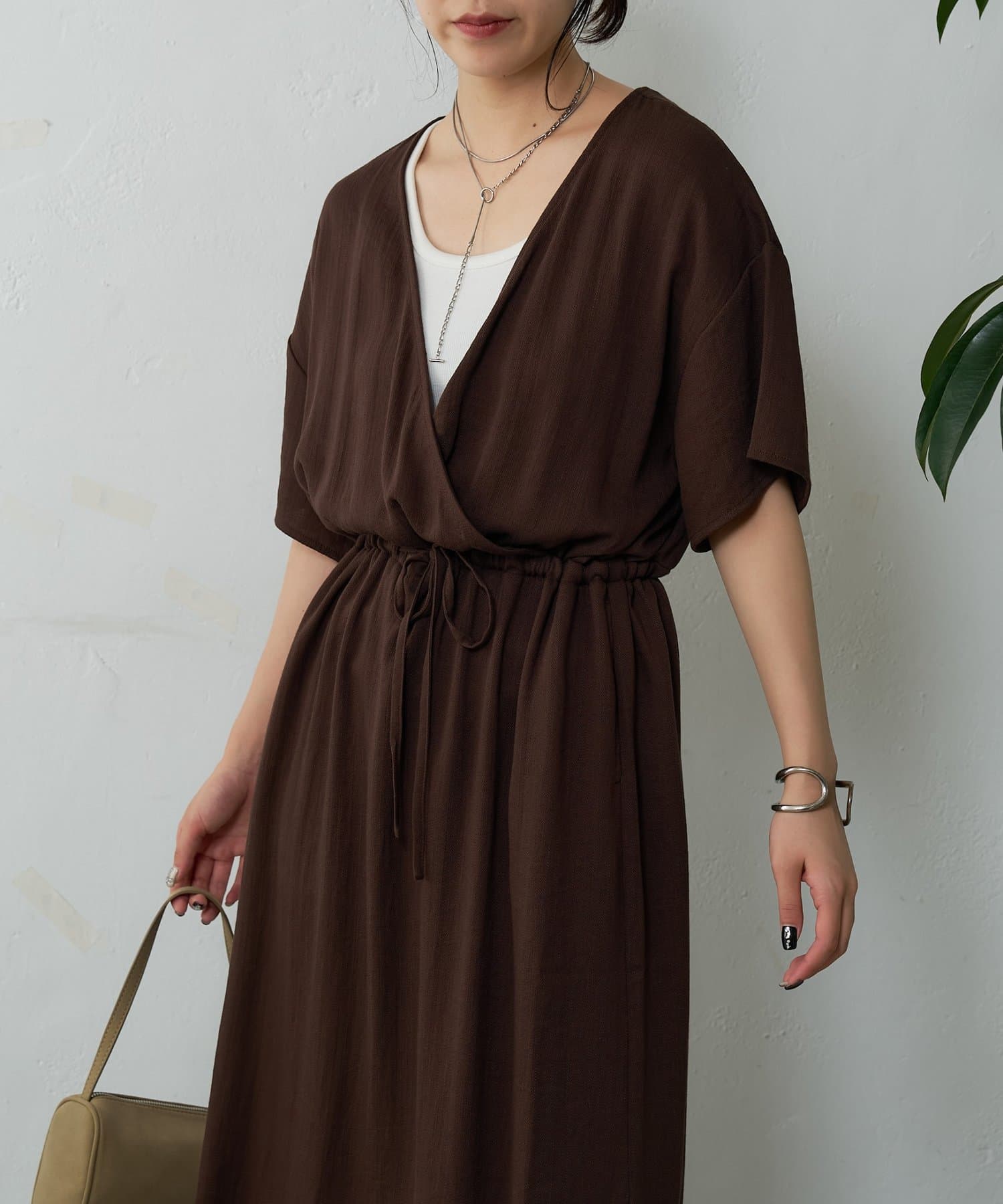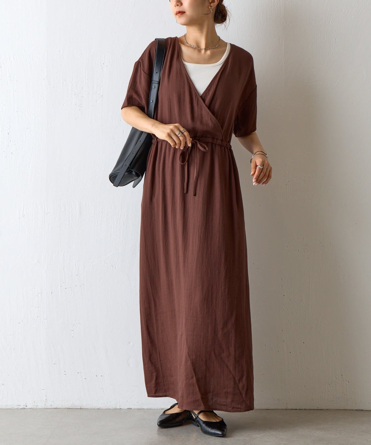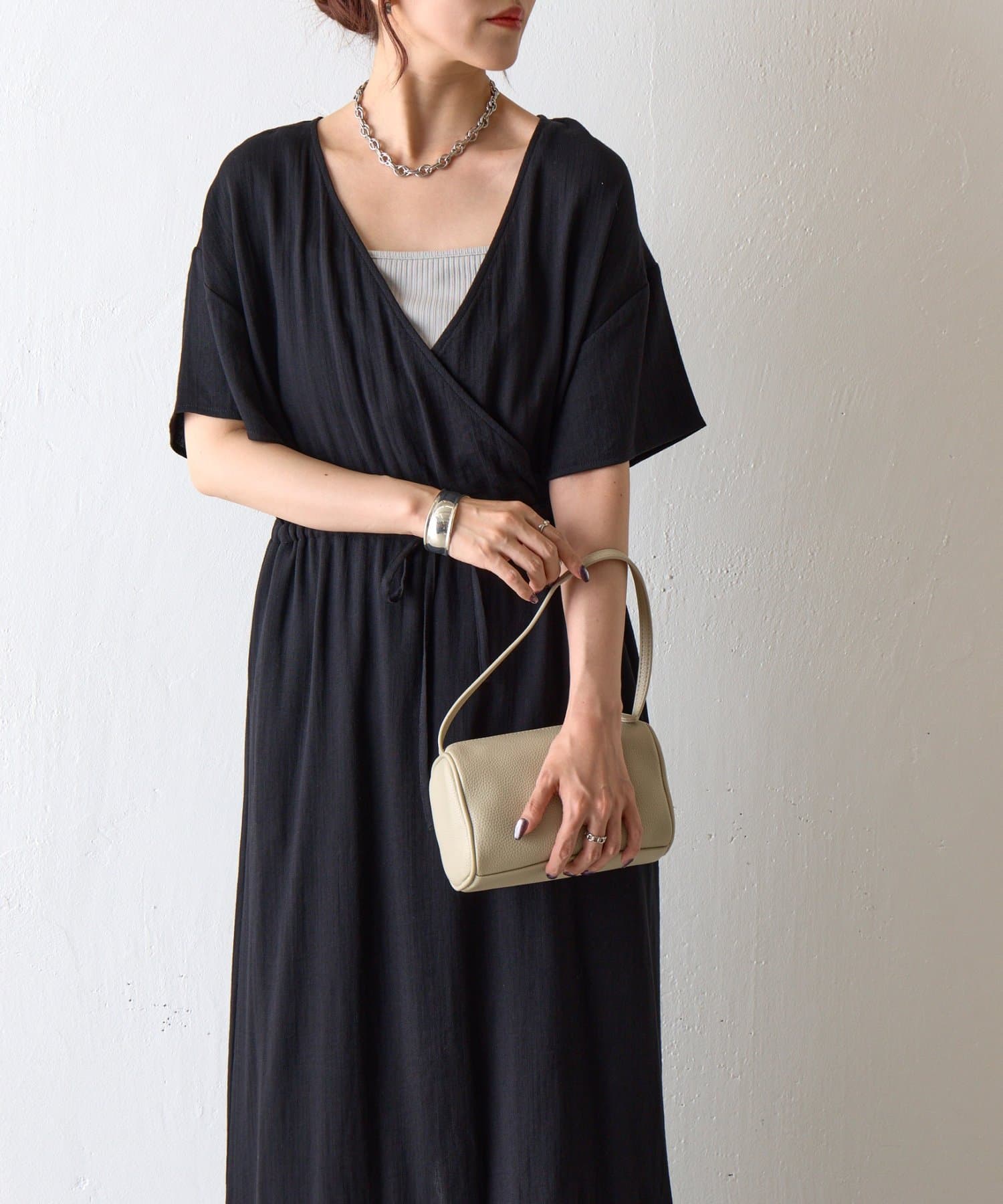 【一枚でサマ見え。リネンライクカシュクールワンピース】