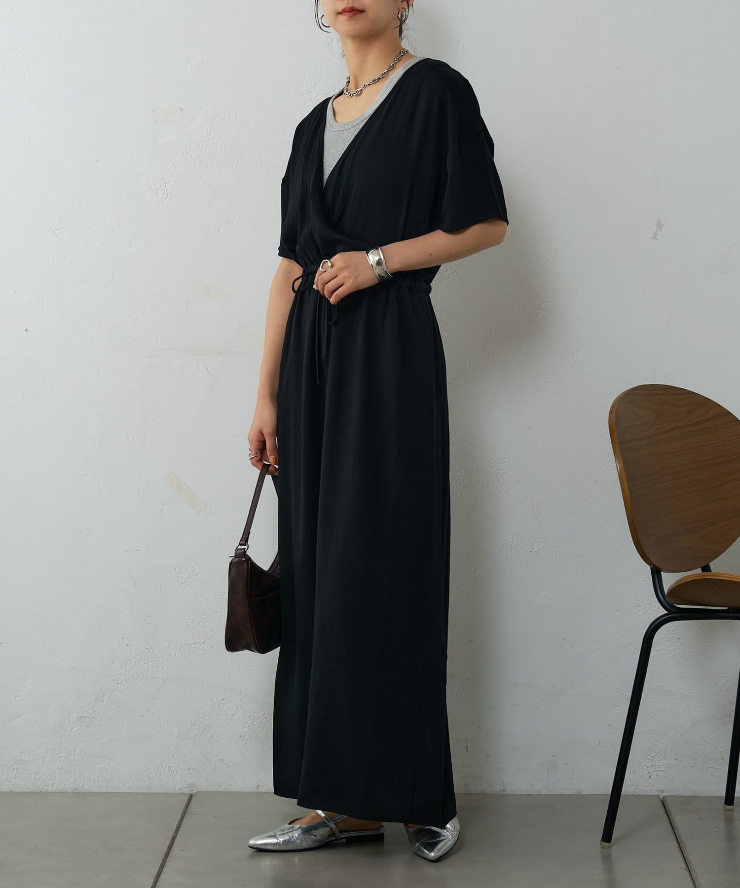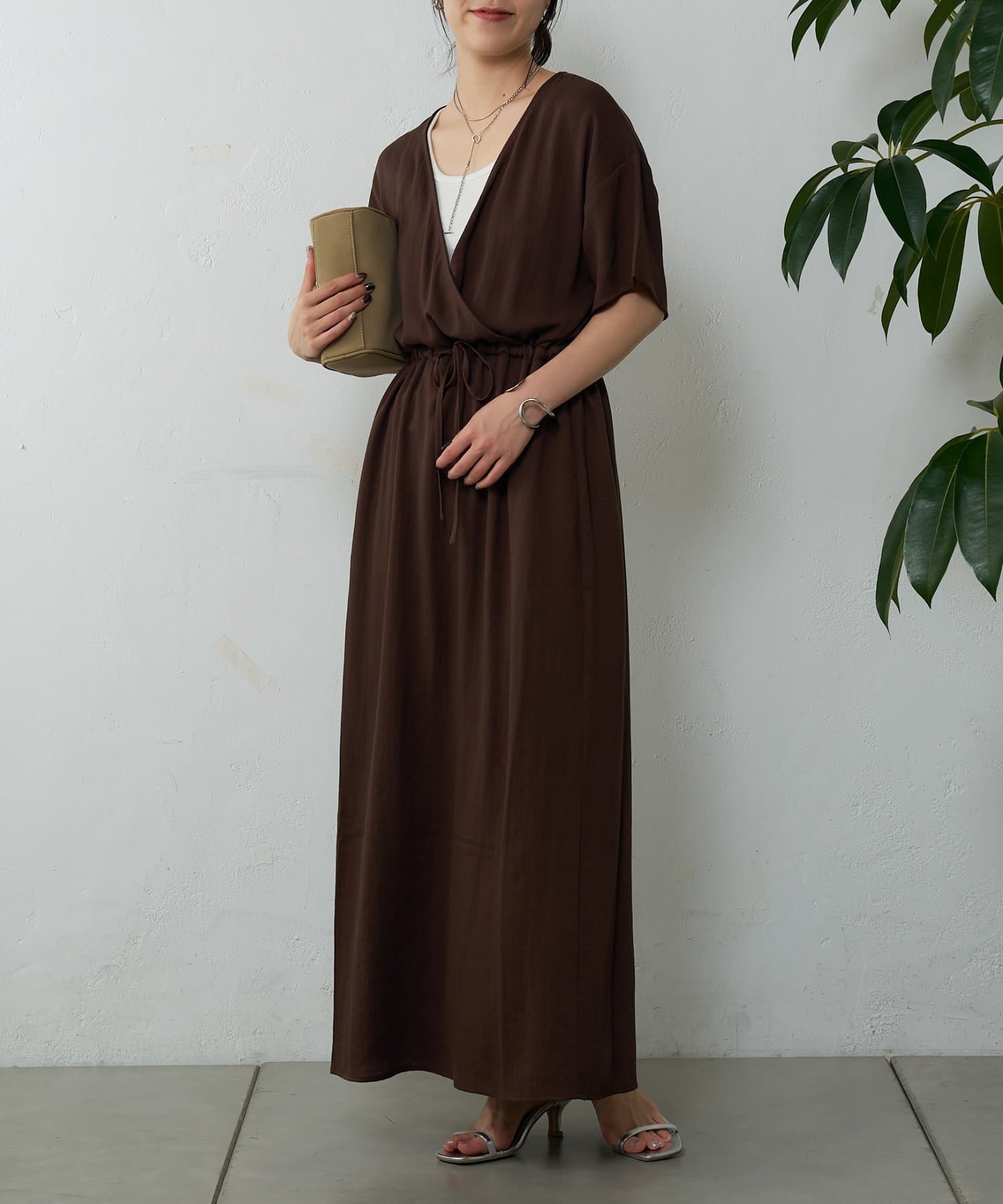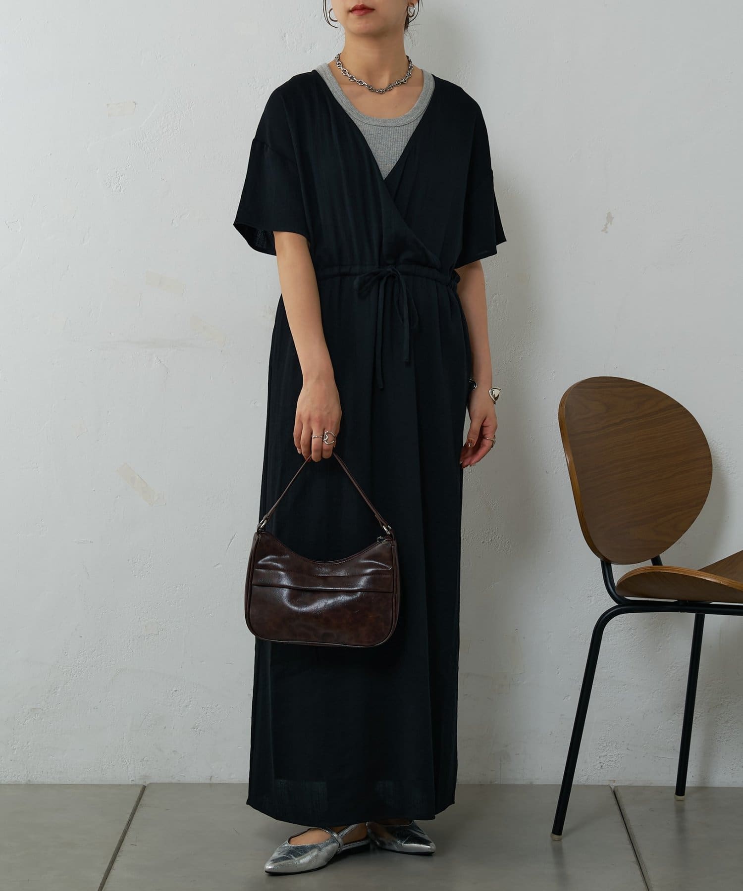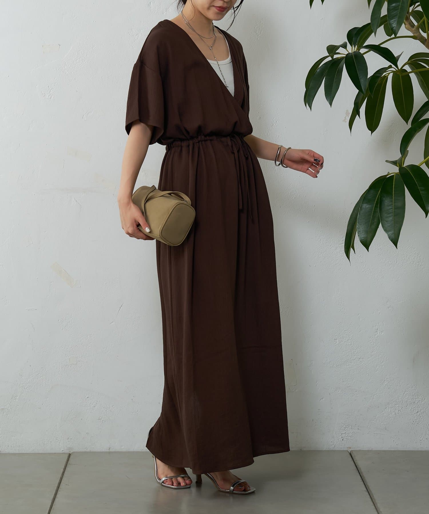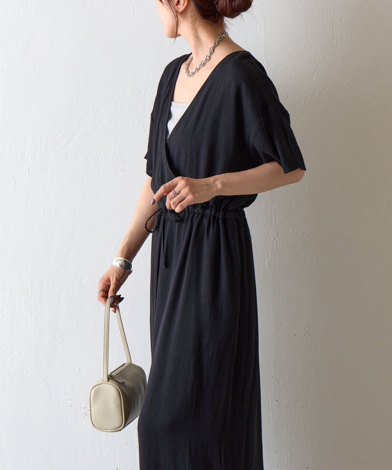 【一枚でサマ見え。リネンライクカシュクールワンピース】