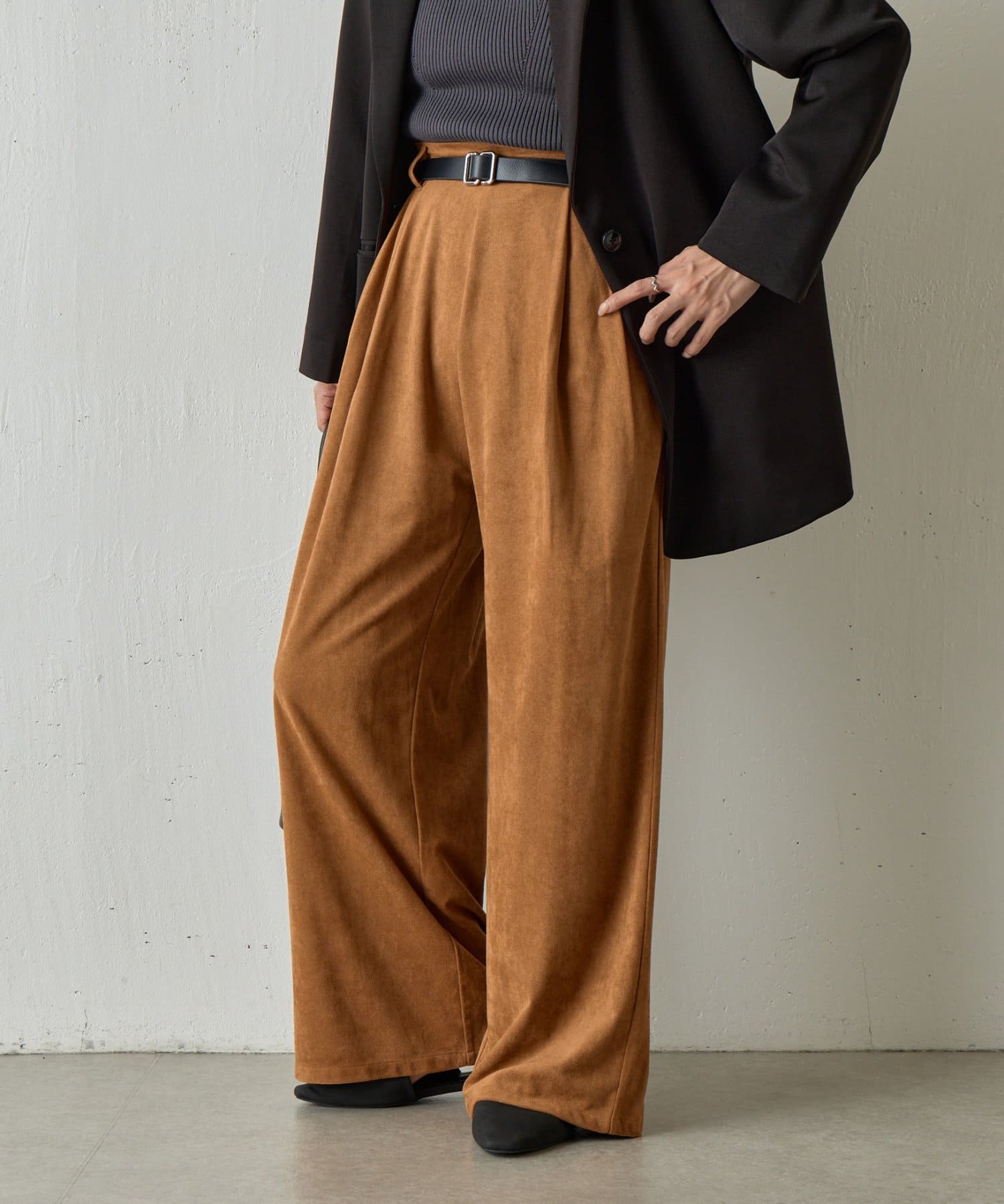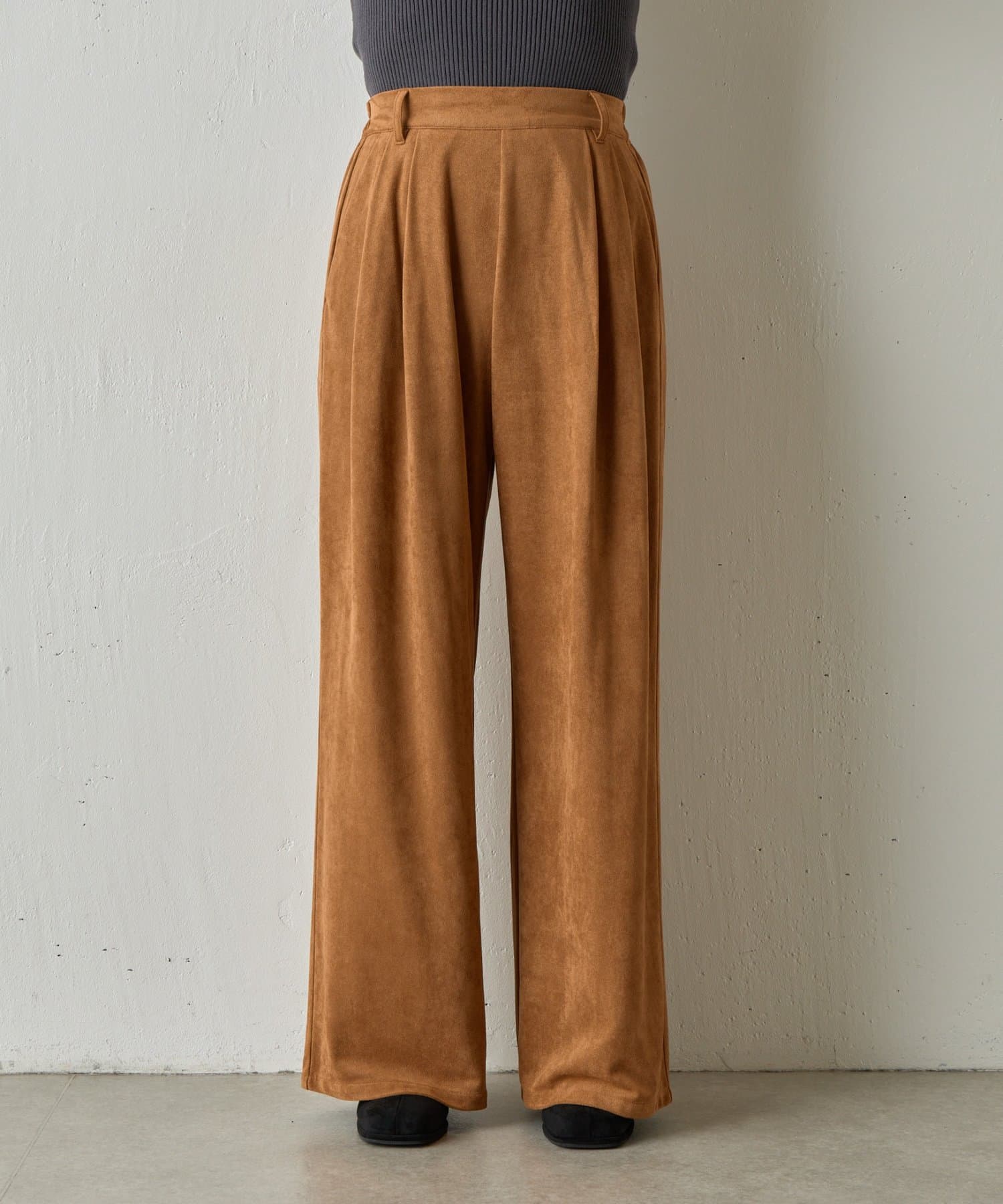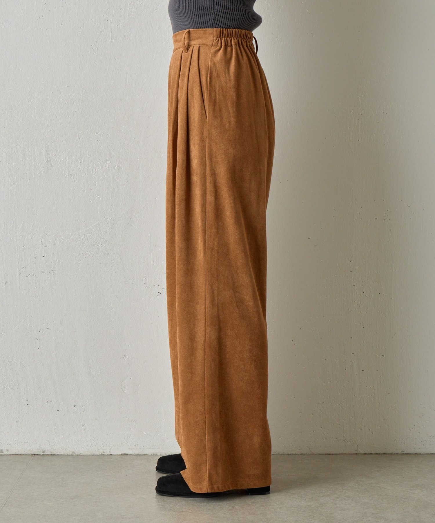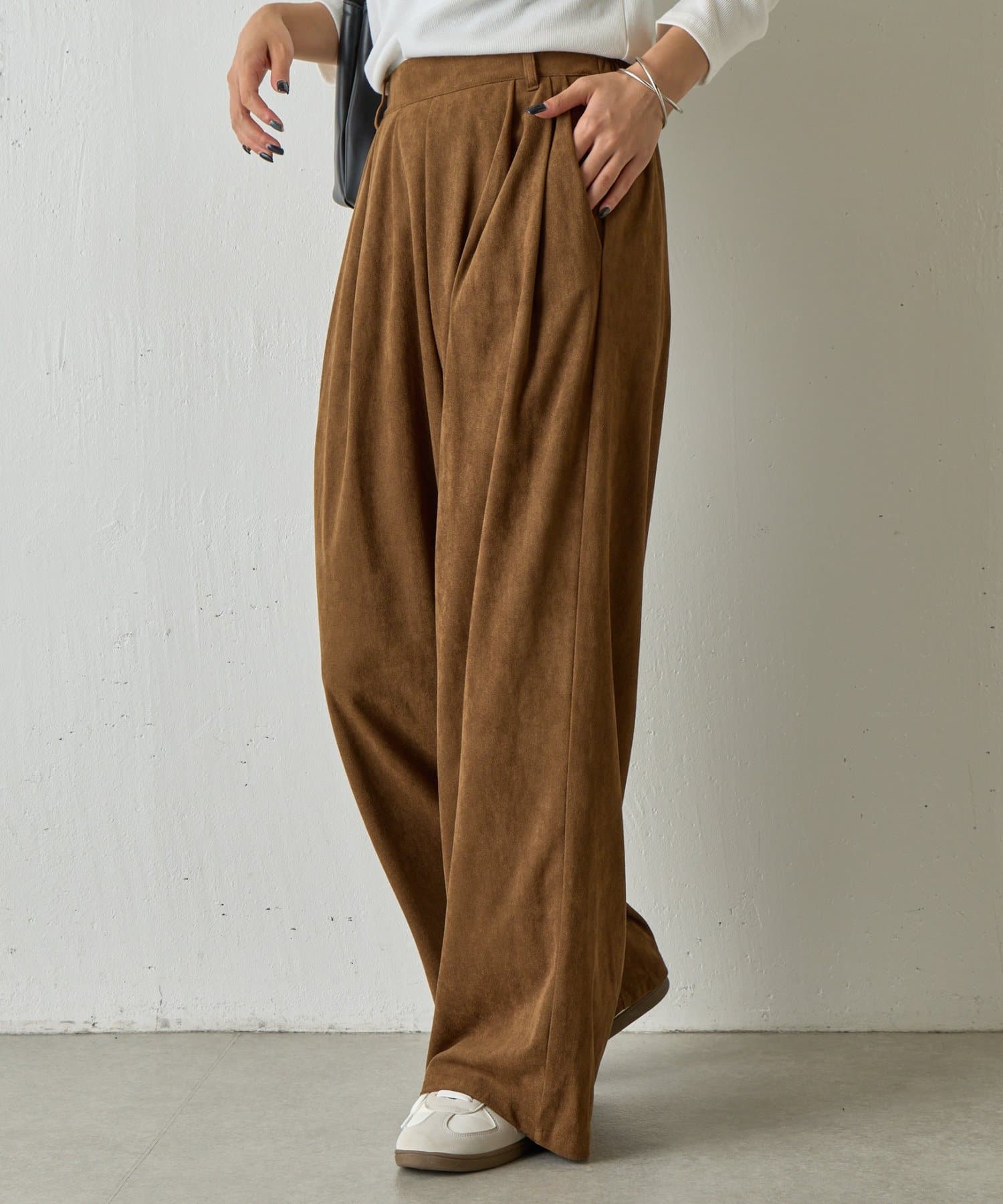 【上品な質感と抜け感を両立 フェイクスエード2タックワイドパンツ】