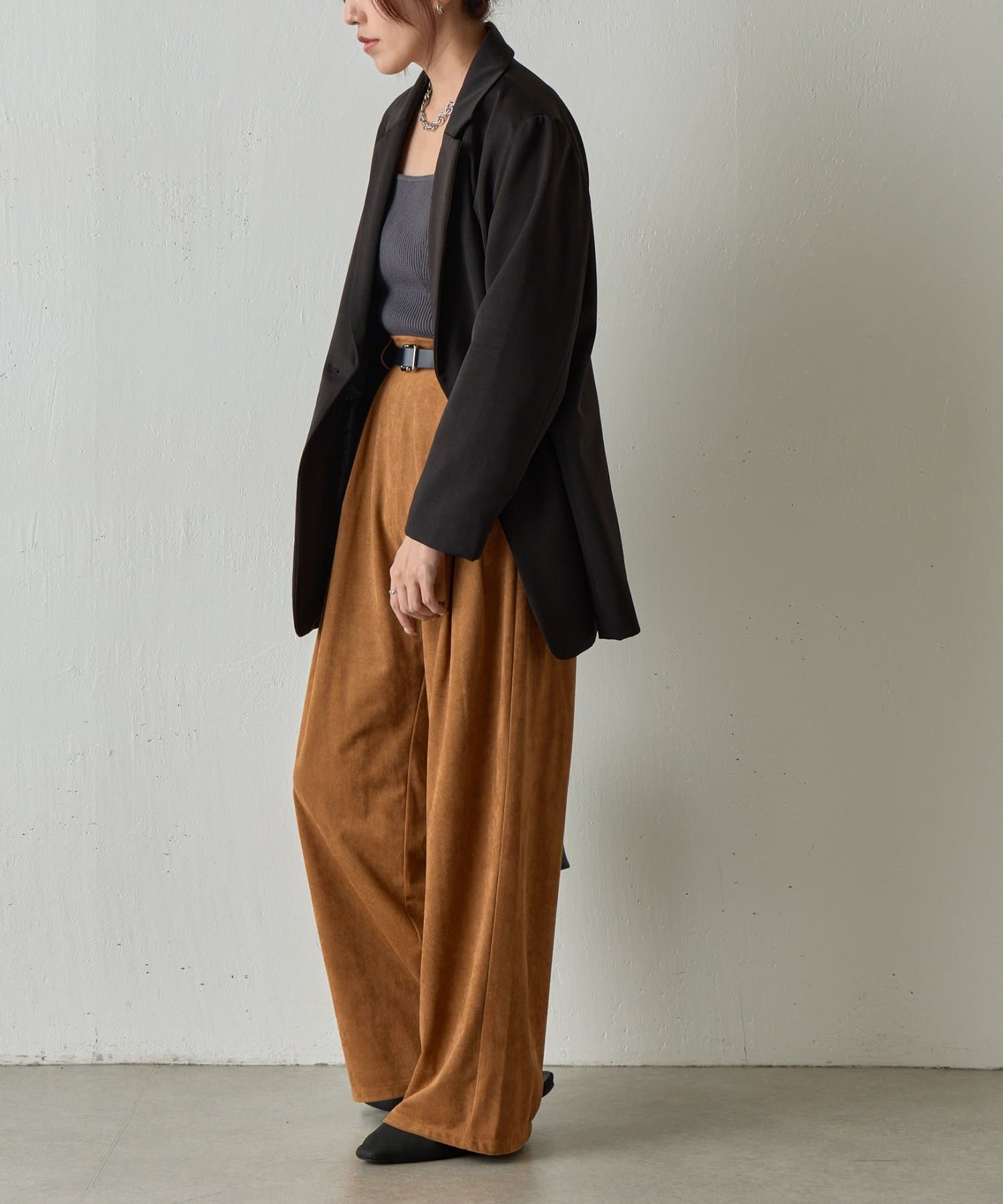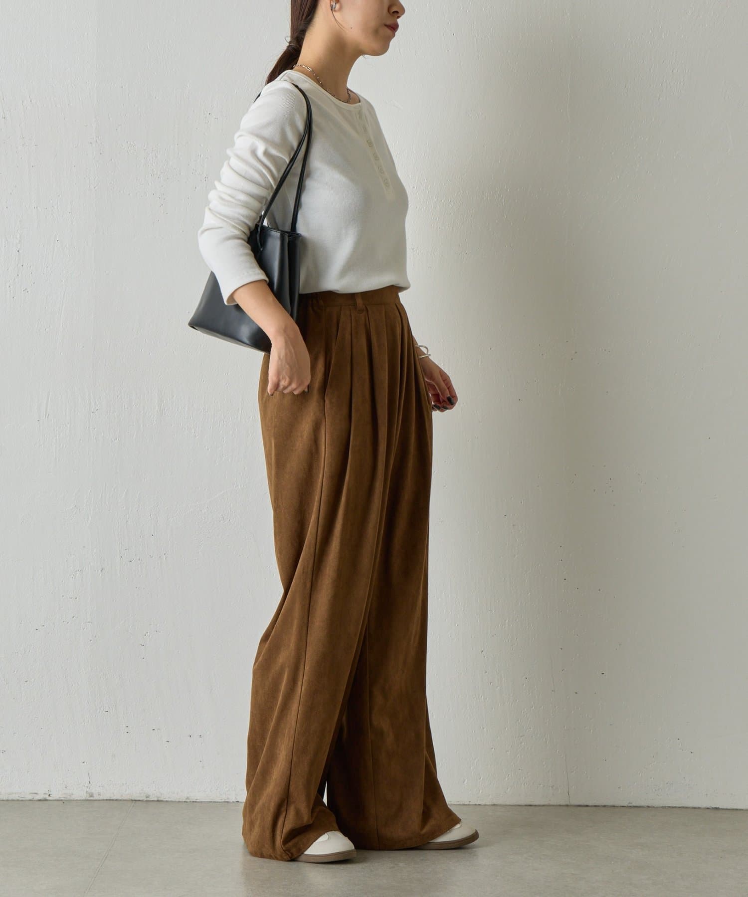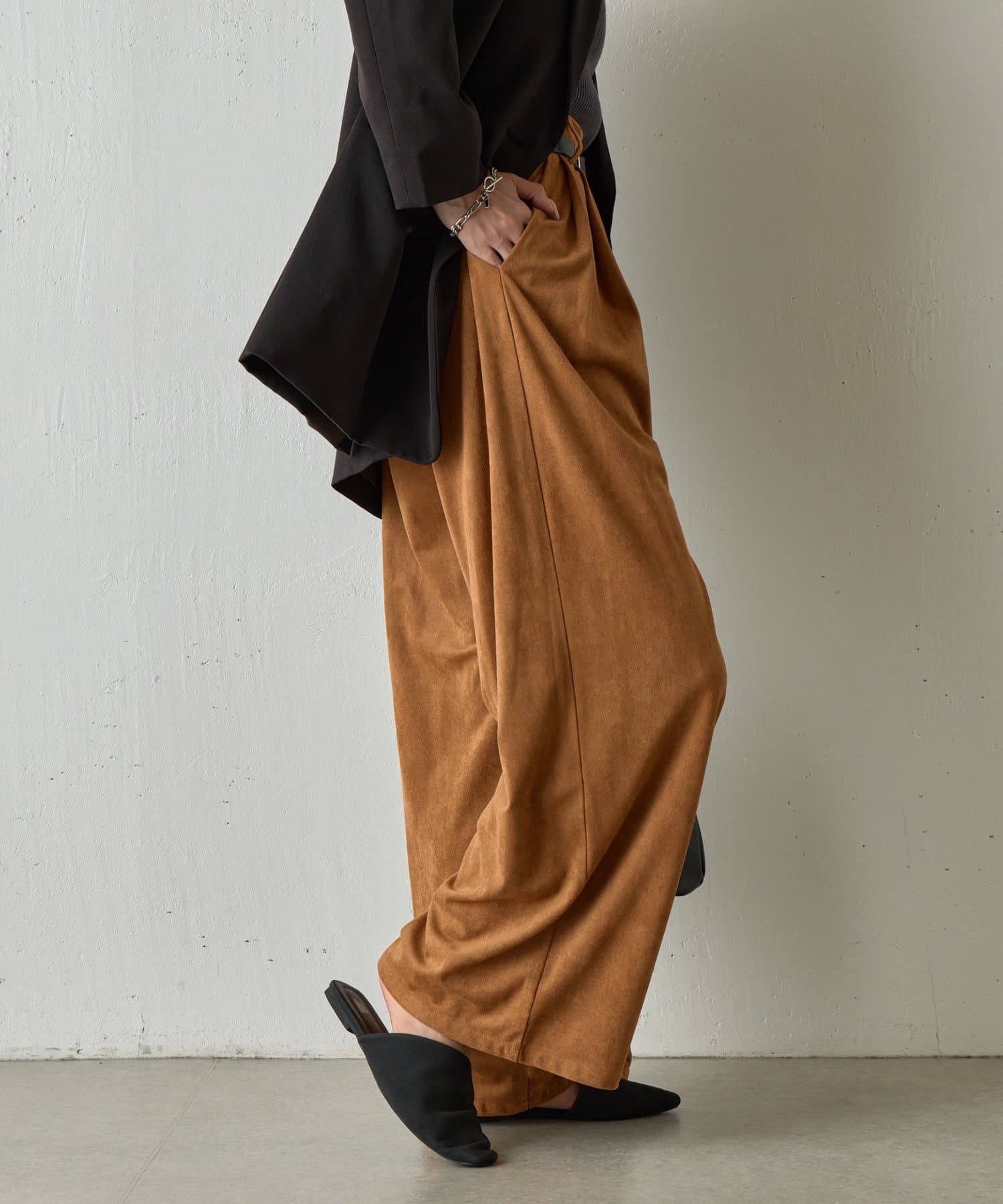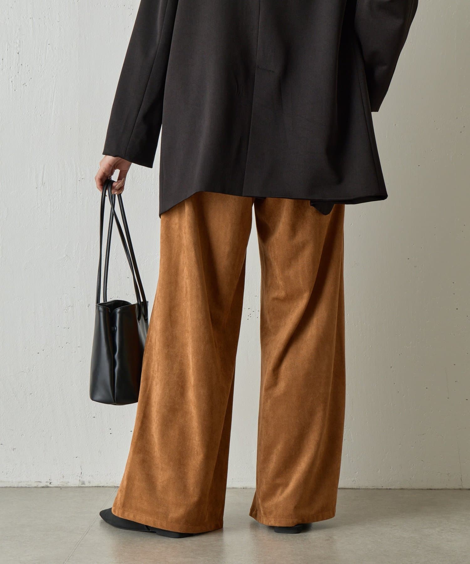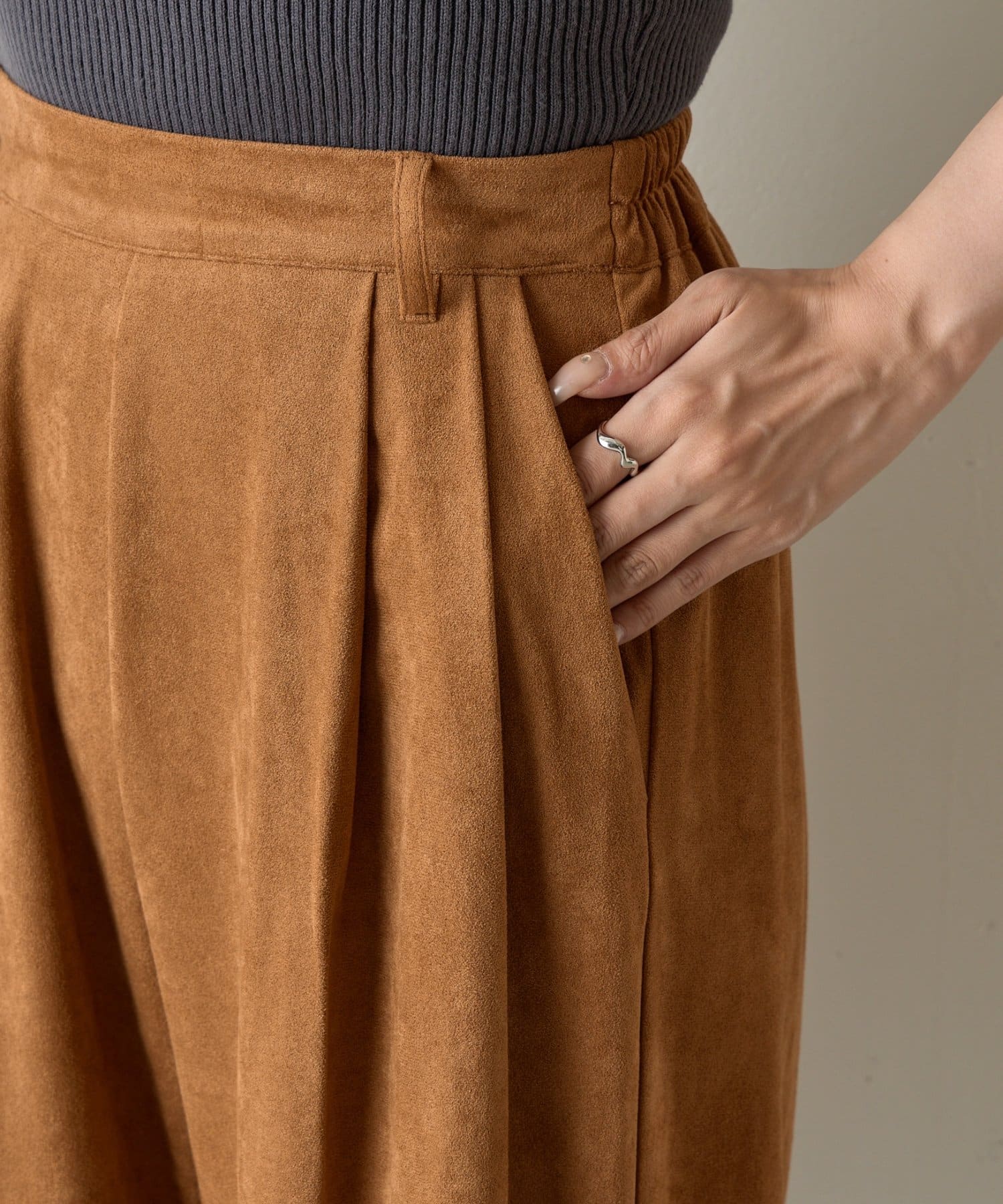 【上品な質感と抜け感を両立 フェイクスエード2タックワイドパンツ】