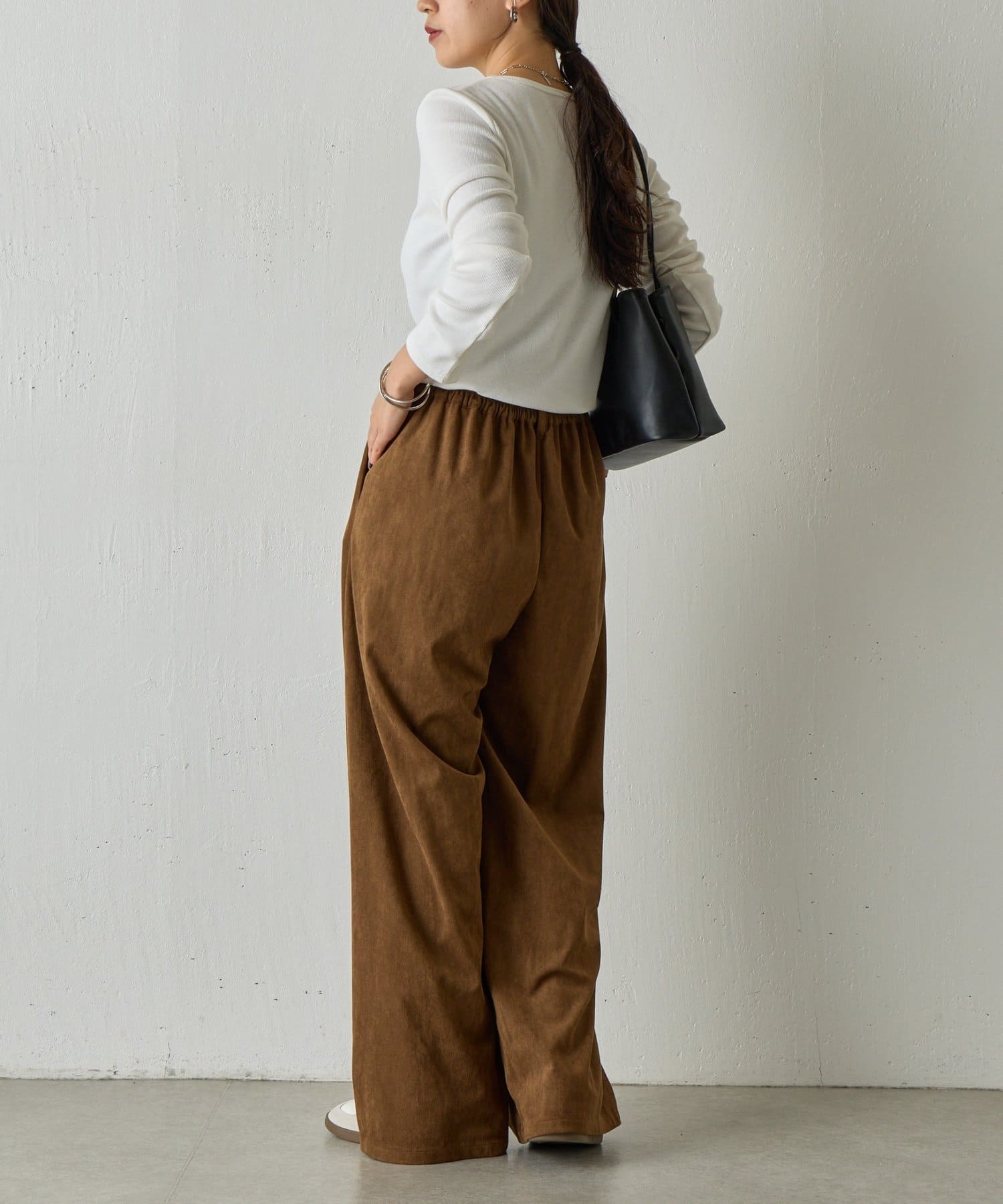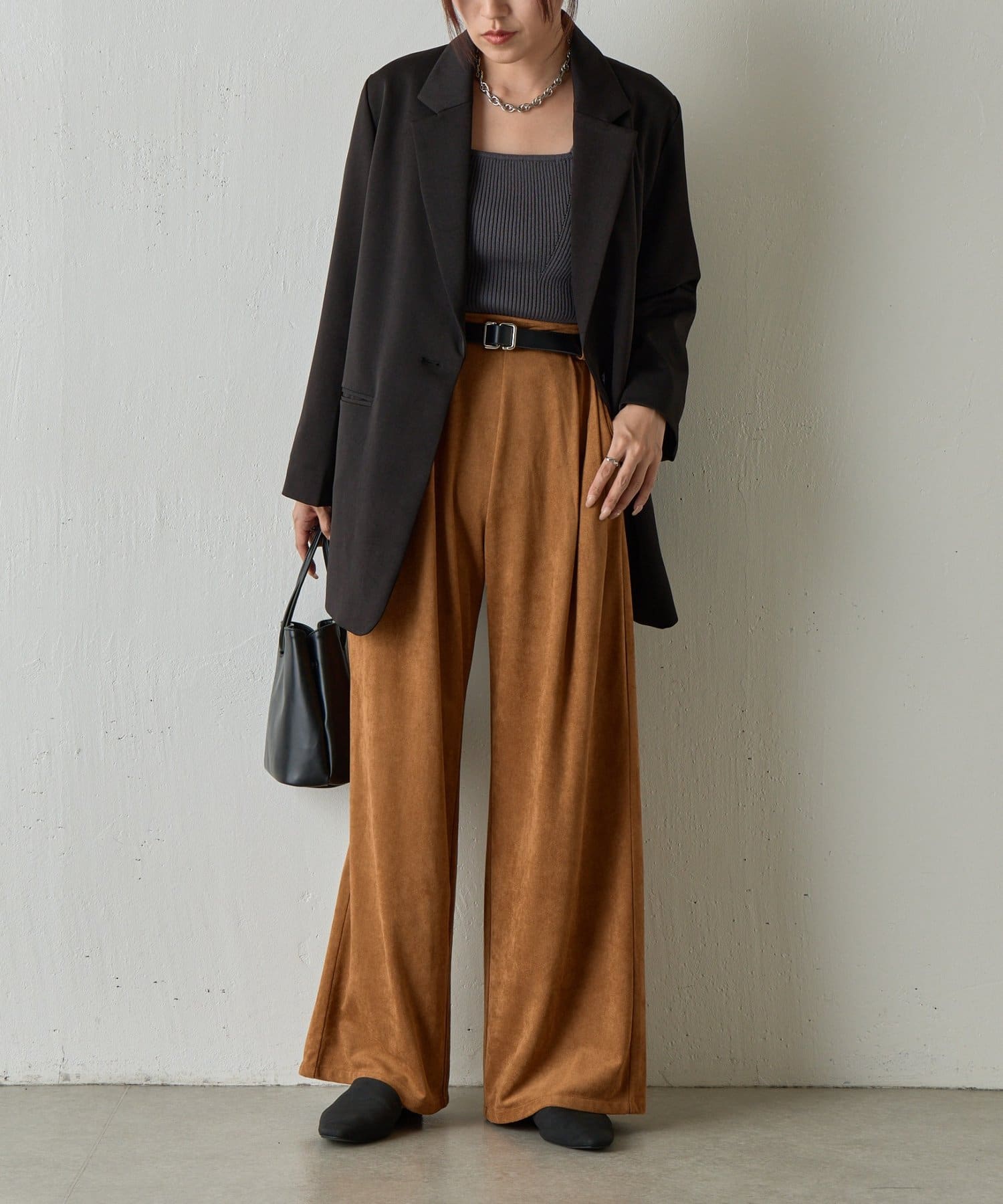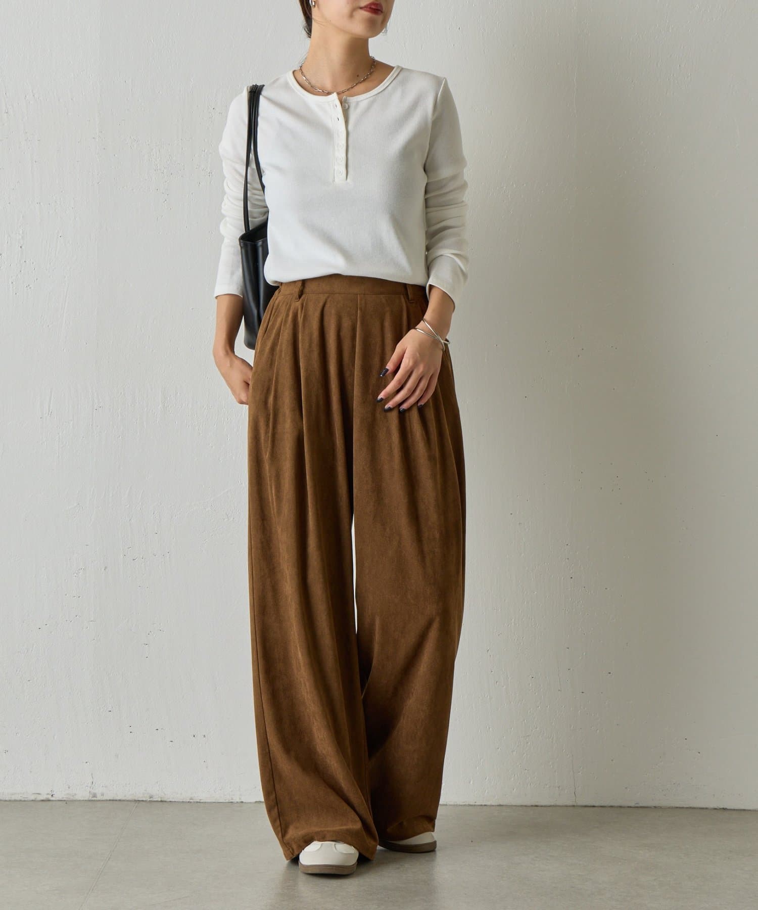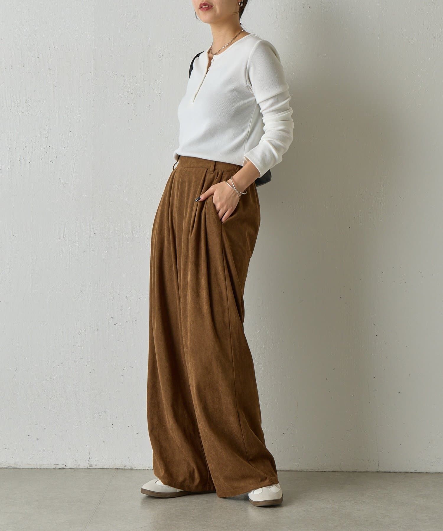 【上品な質感と抜け感を両立 フェイクスエード2タックワイドパンツ】