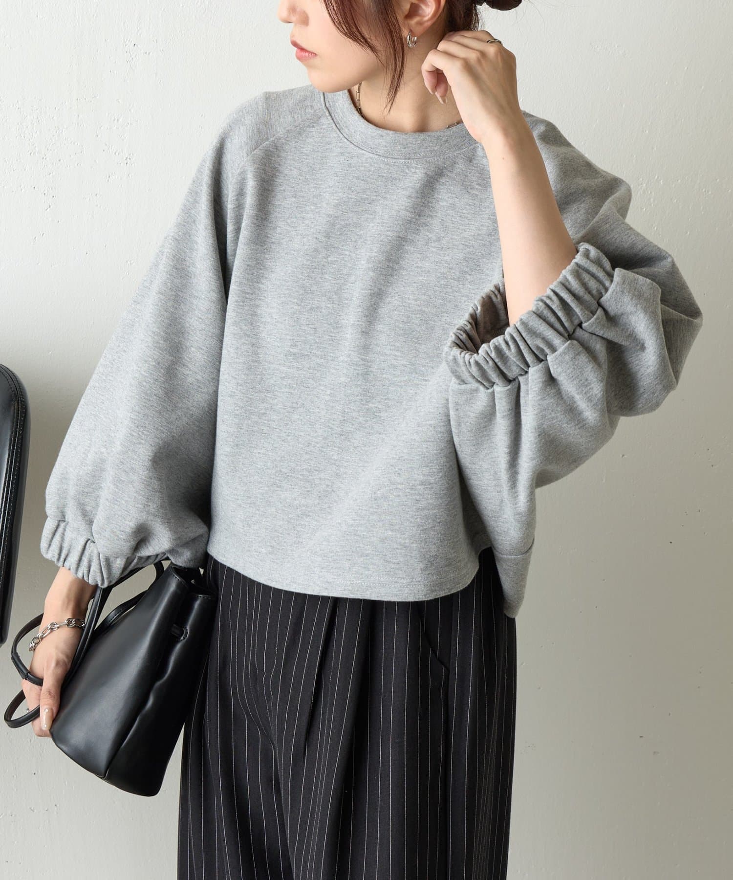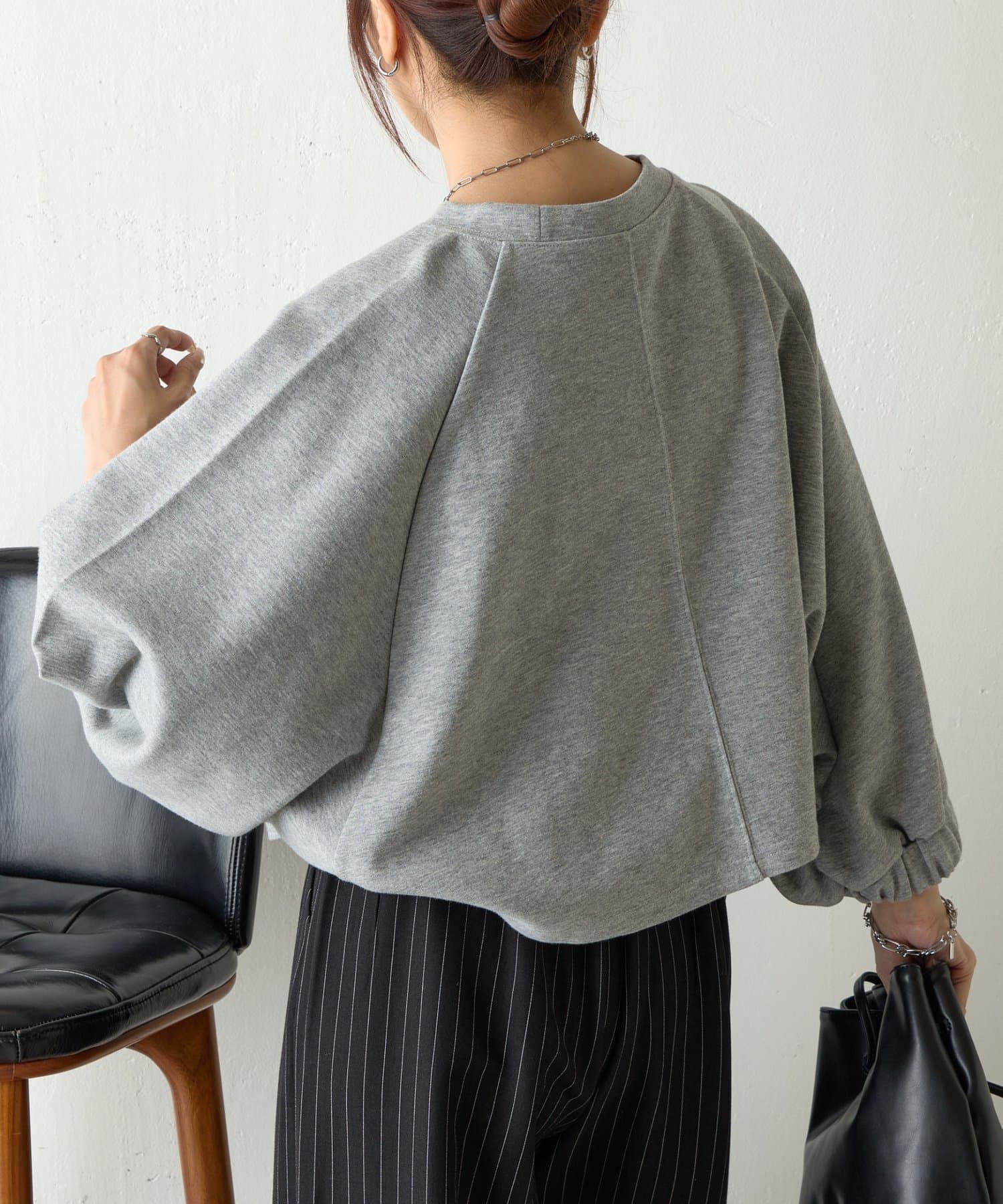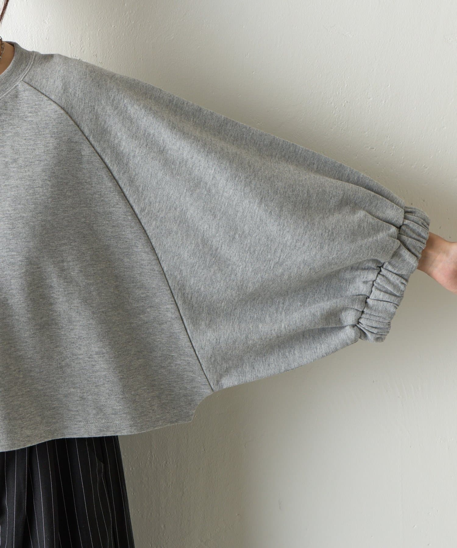 肩まわりを自然にカバーするドルマンスリーブと、身体を包み込むゆったりシルエットが大人のリラックススタイルを演出。