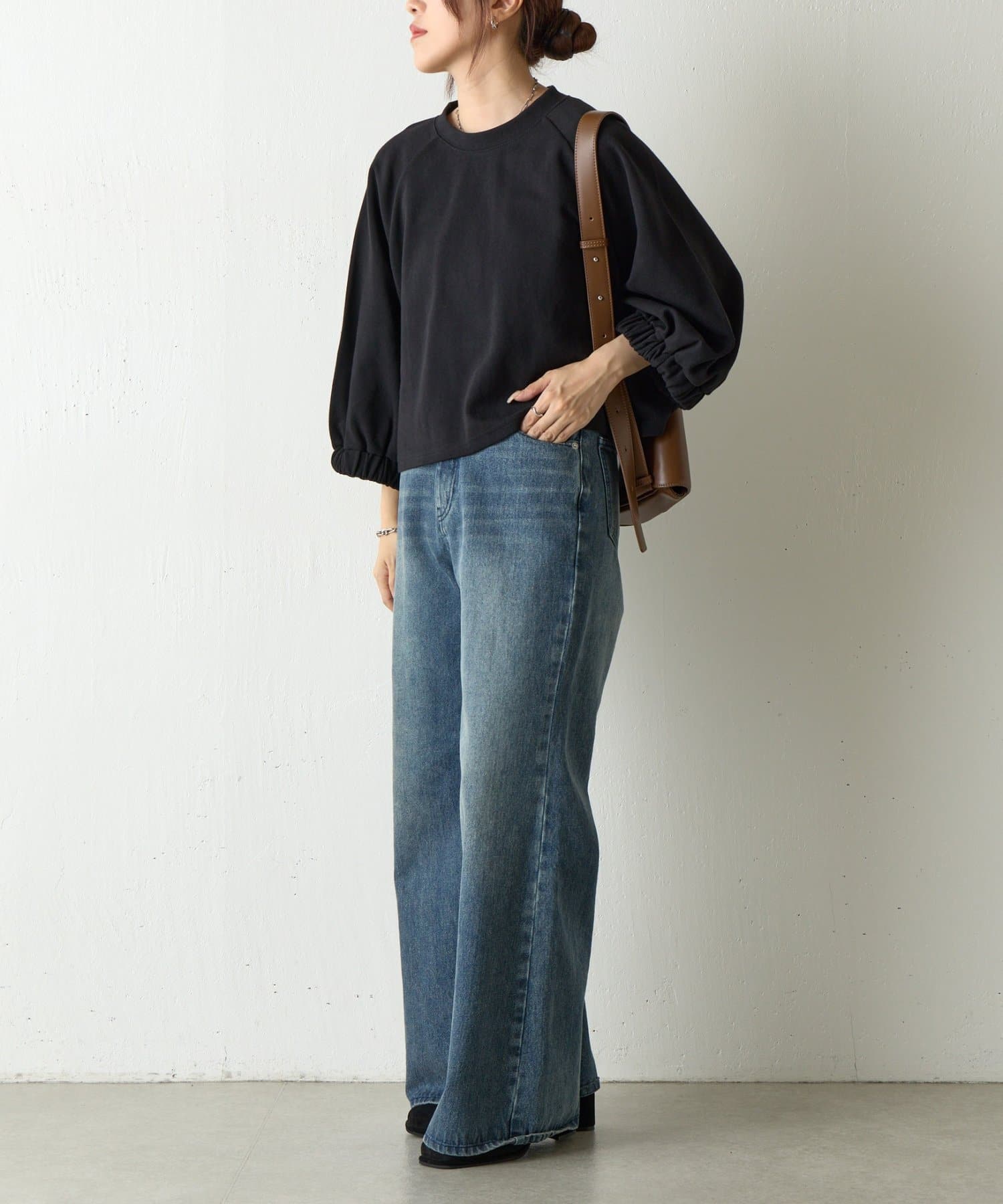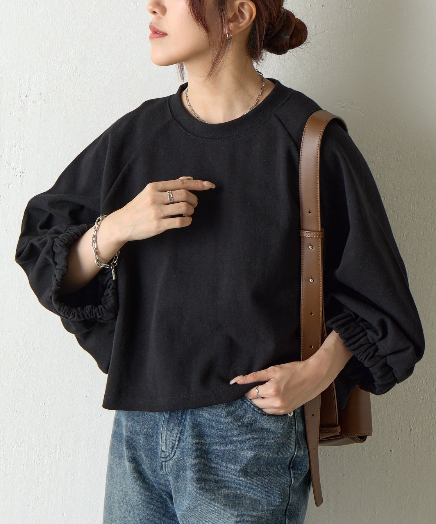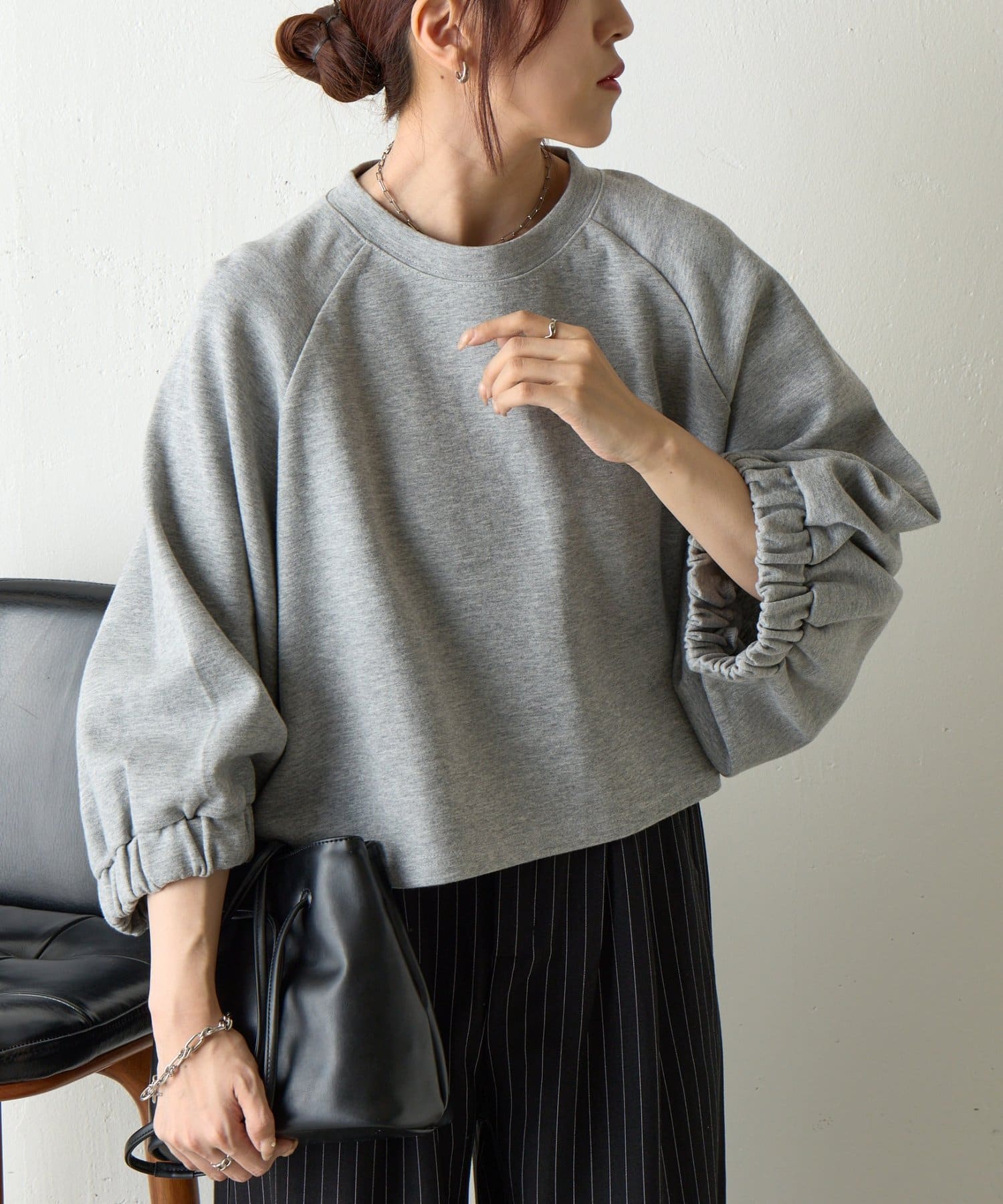 肩まわりを自然にカバーするドルマンスリーブと、身体を包み込むゆったりシルエットが大人のリラックススタイルを演出。