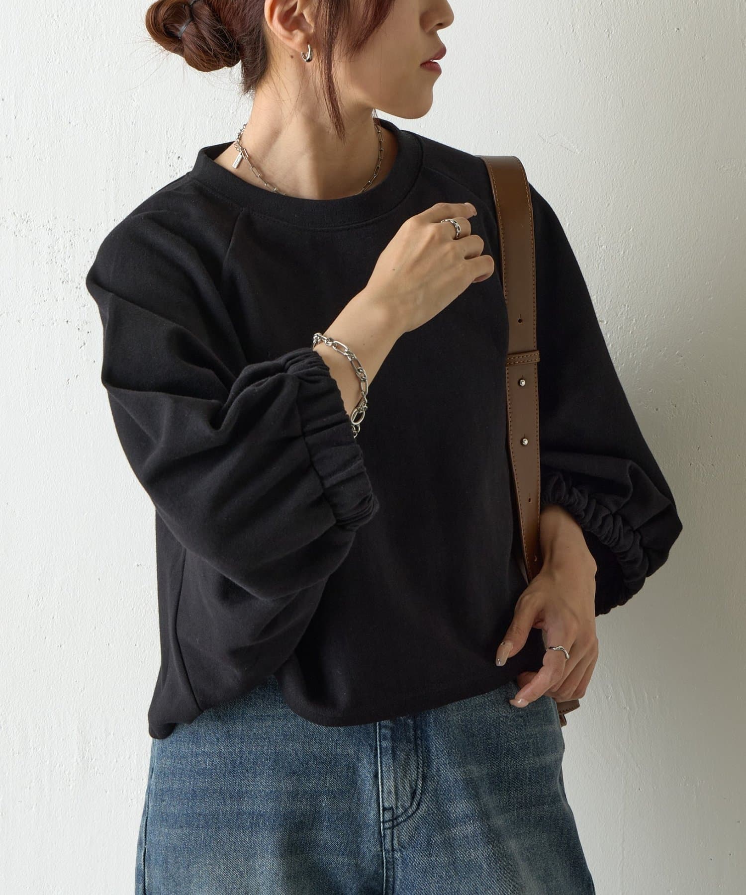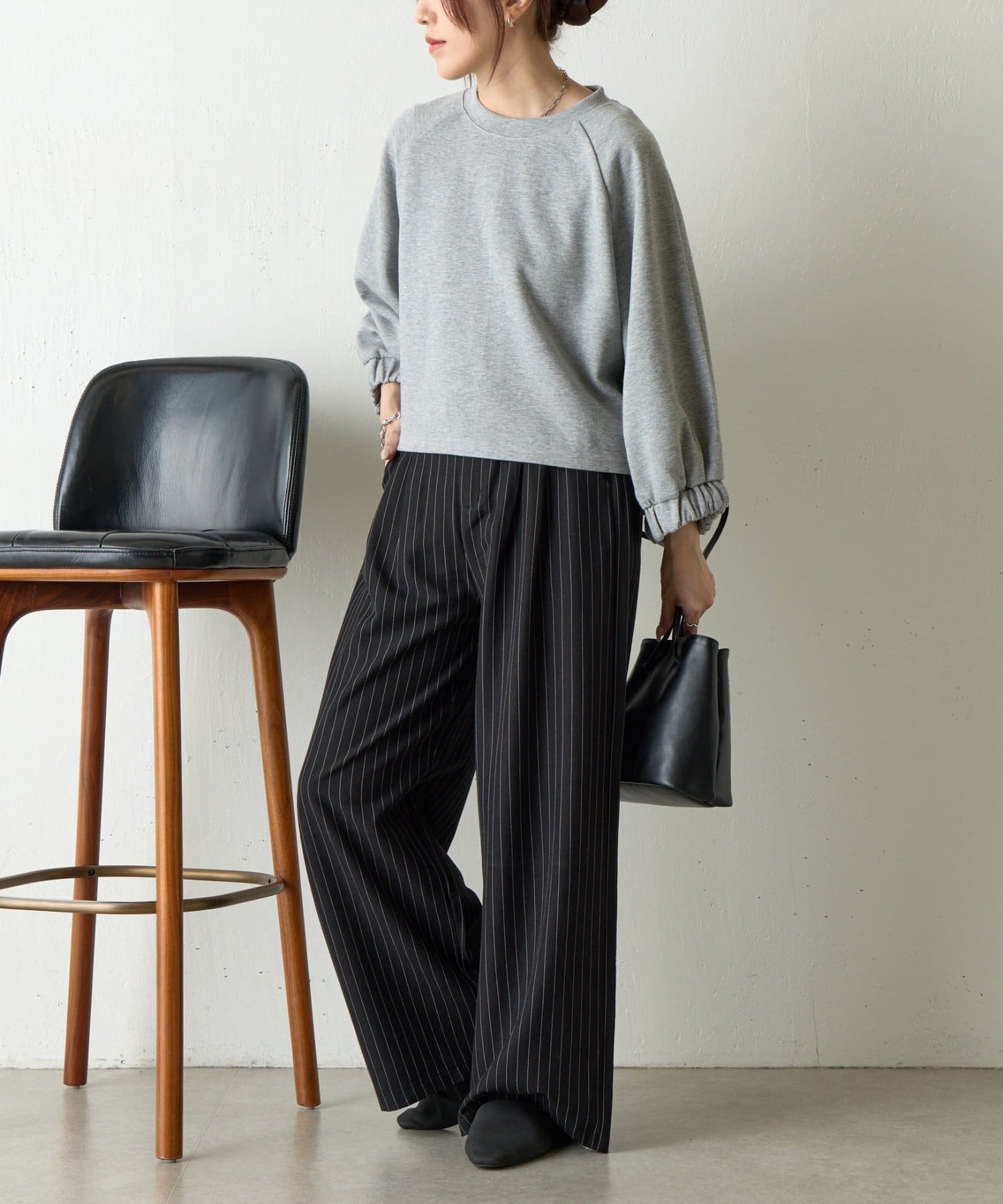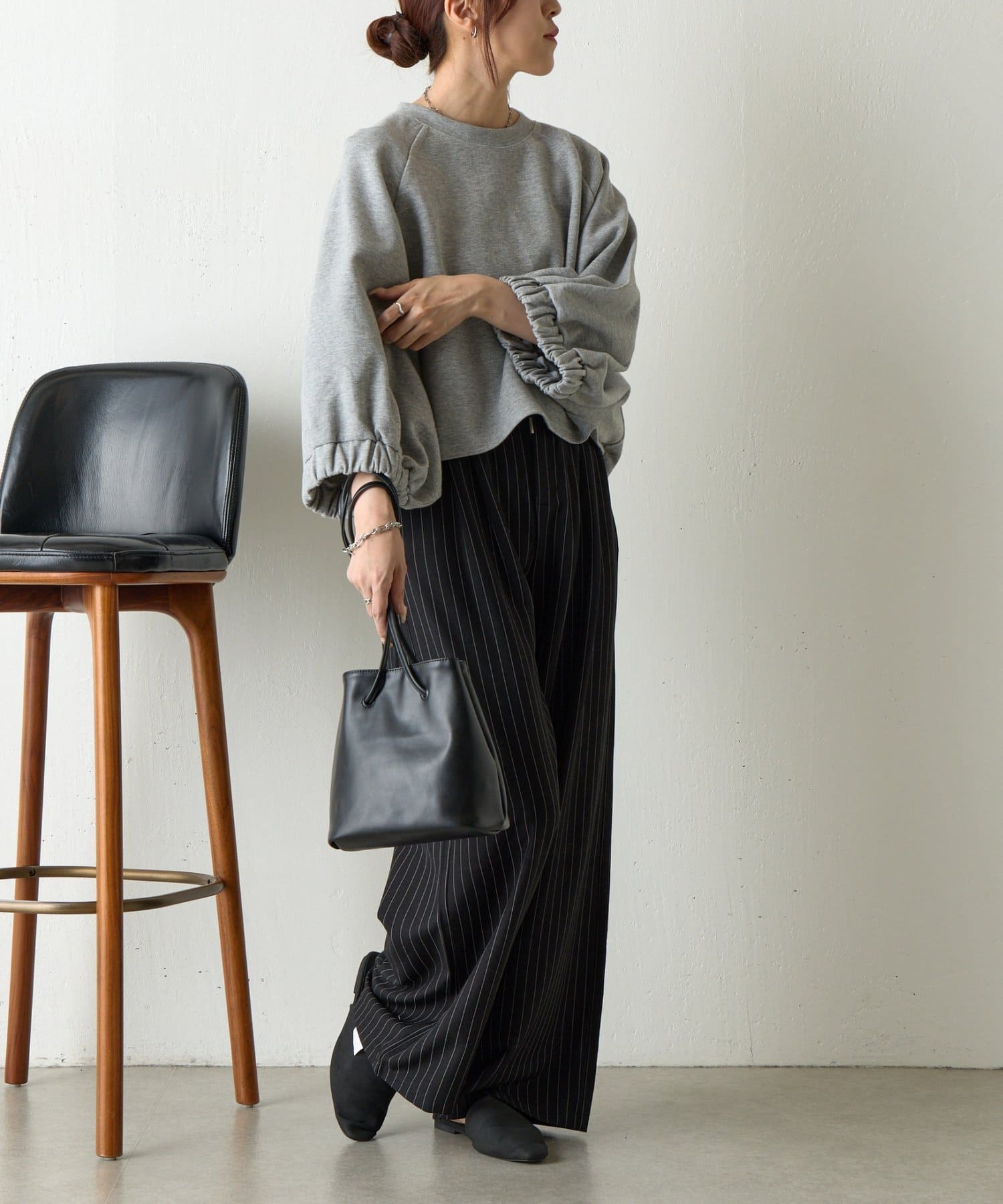 ボリュームはありながらも落ち感のある素材で広がりすぎず、すっきりとした印象で合わせられます。