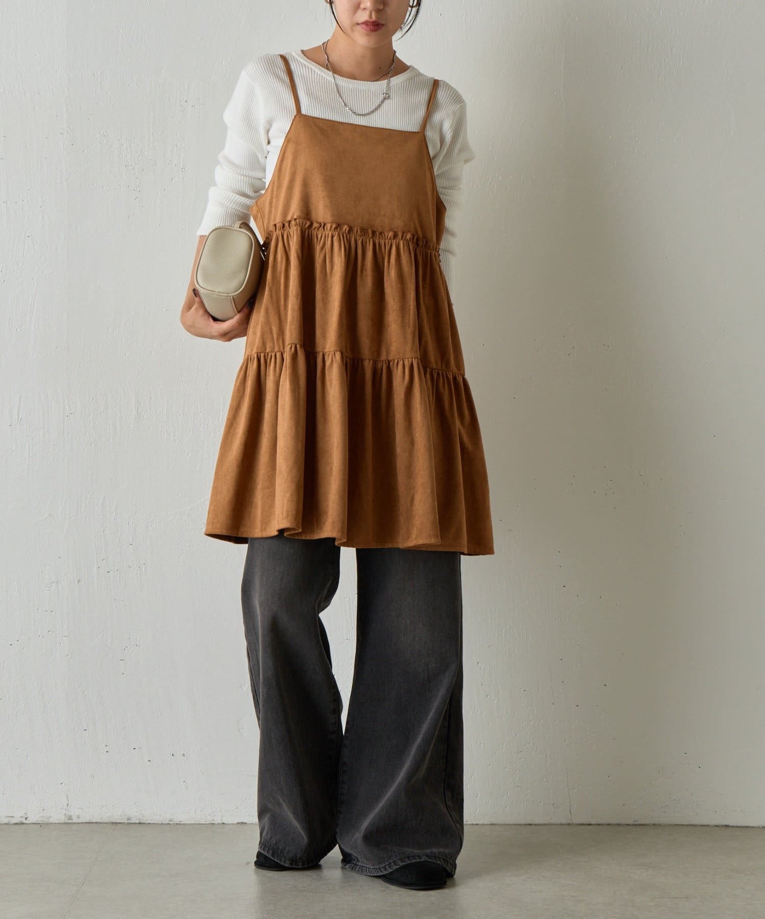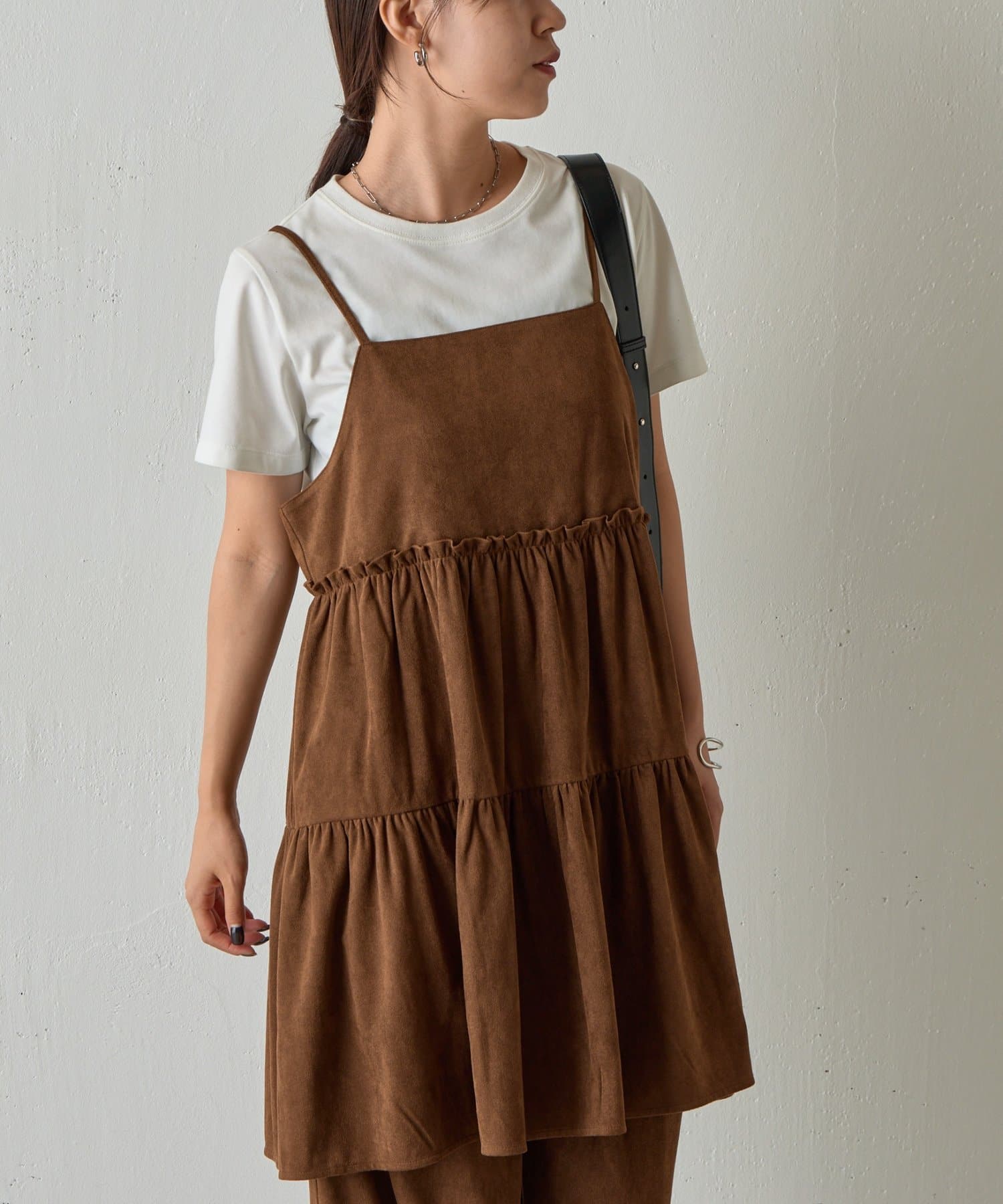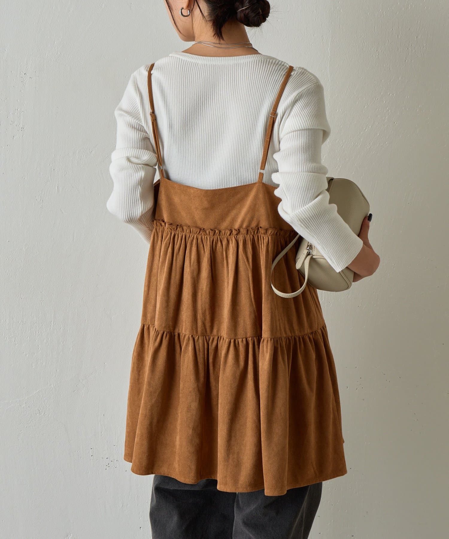 【1枚で主役になる、フェイクスエードキャミワンピース】
