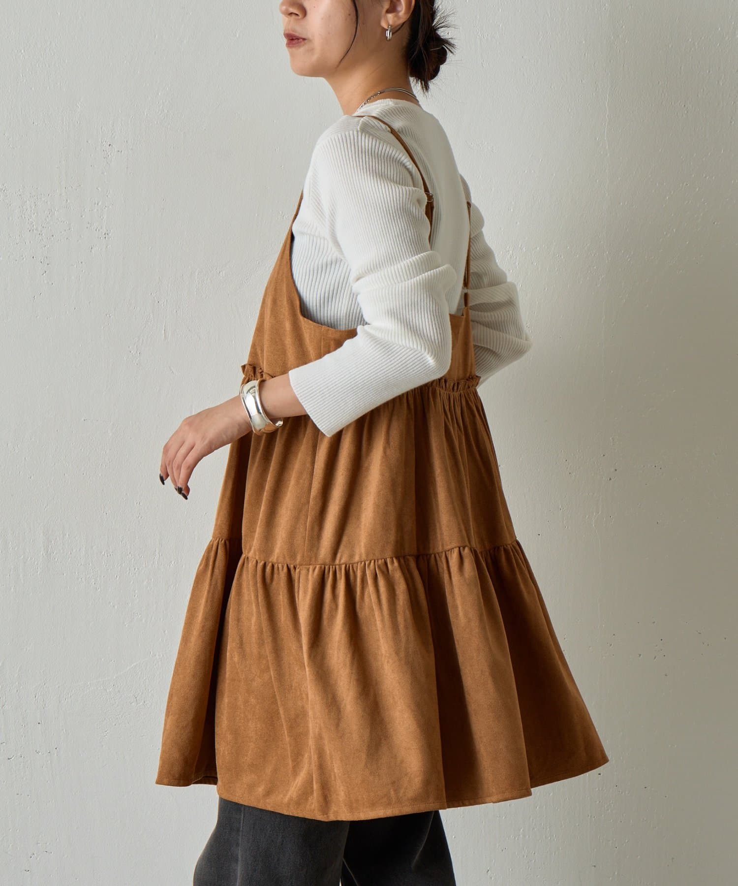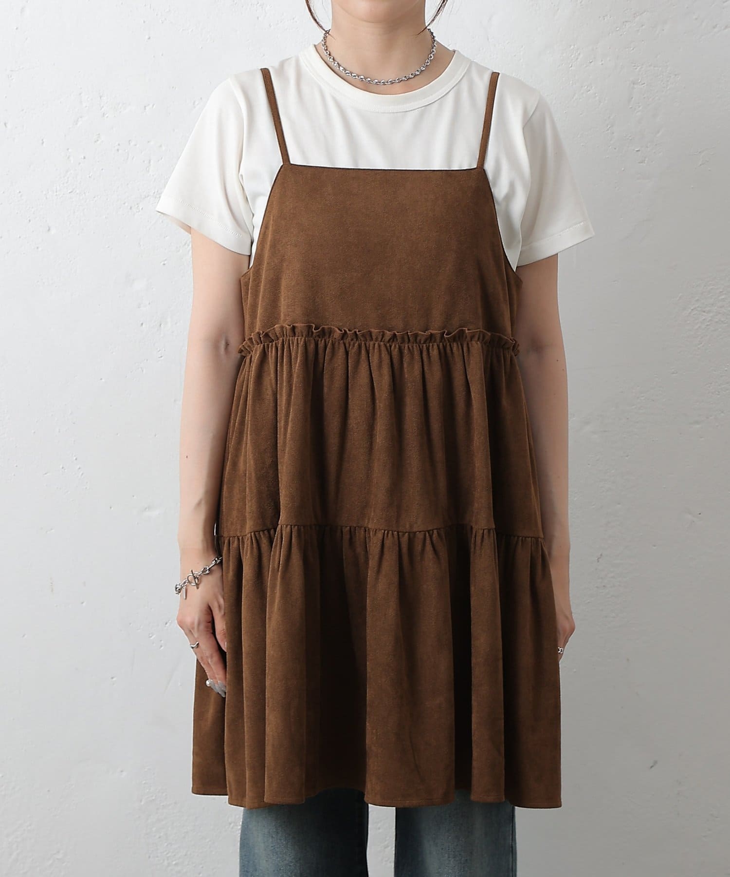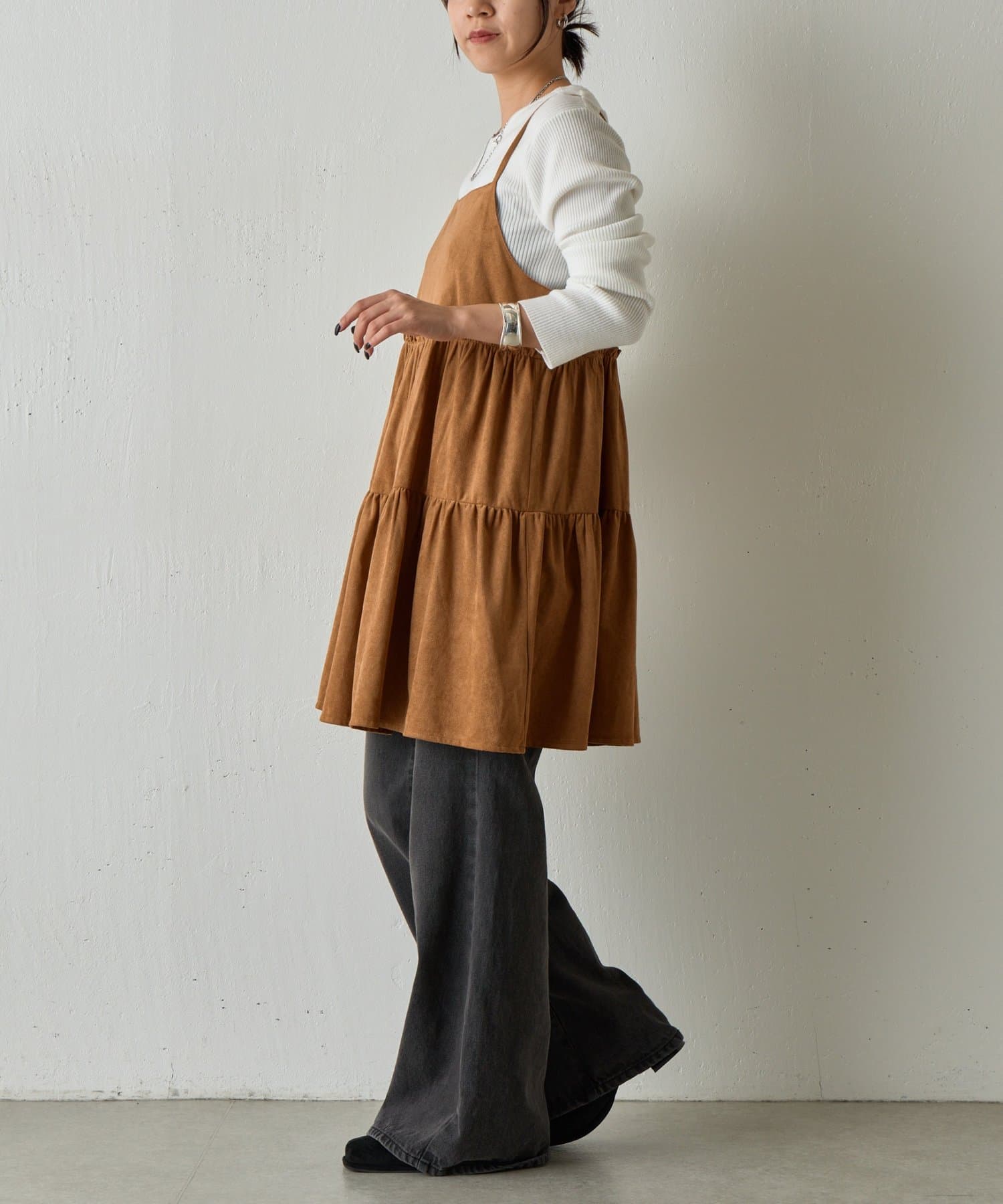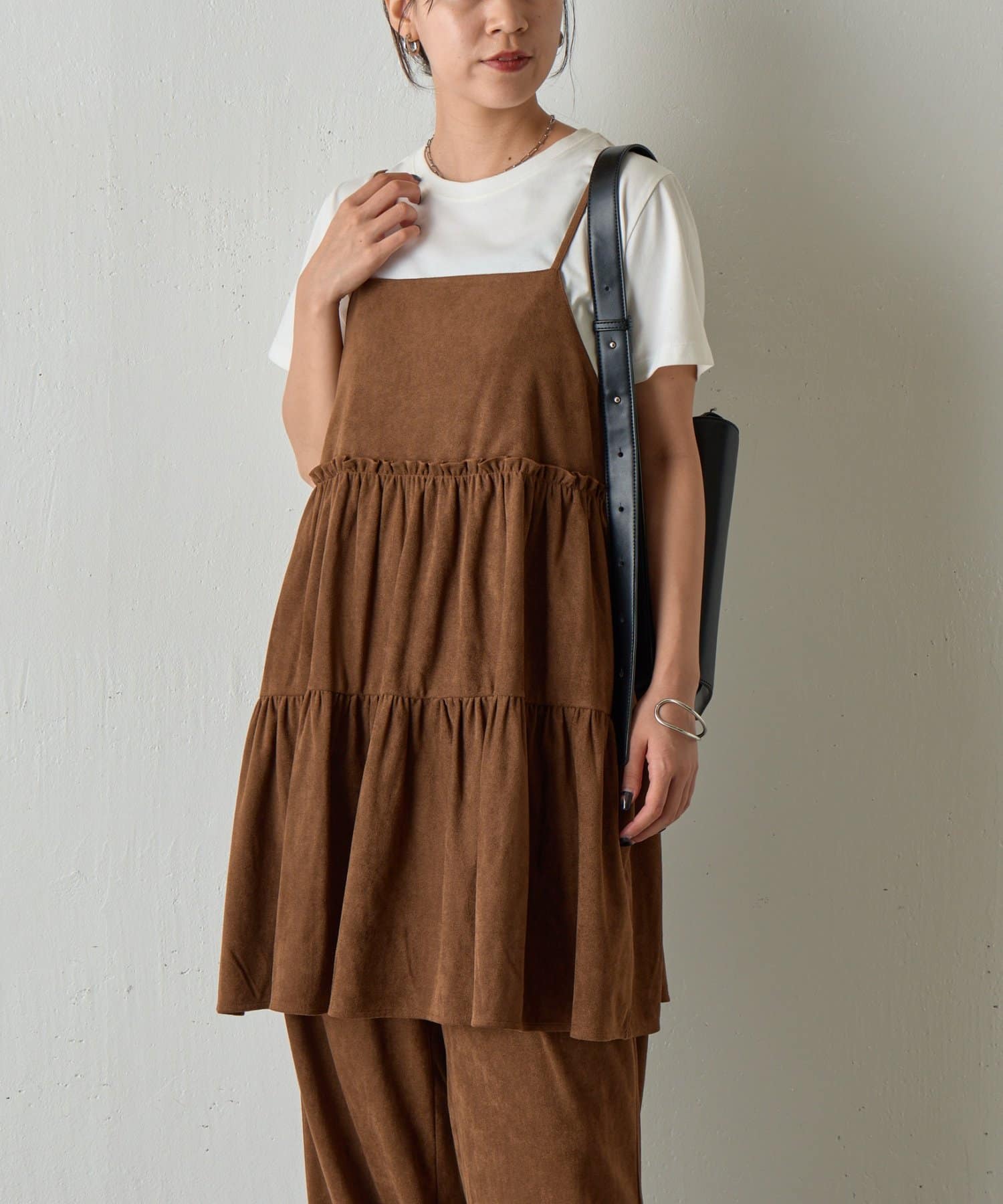 【1枚で主役になる、フェイクスエードキャミワンピース】