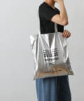 特別なカラーで特別な週末をたのしむような、存在感のあるシルバーが目を引くトートバッグ
