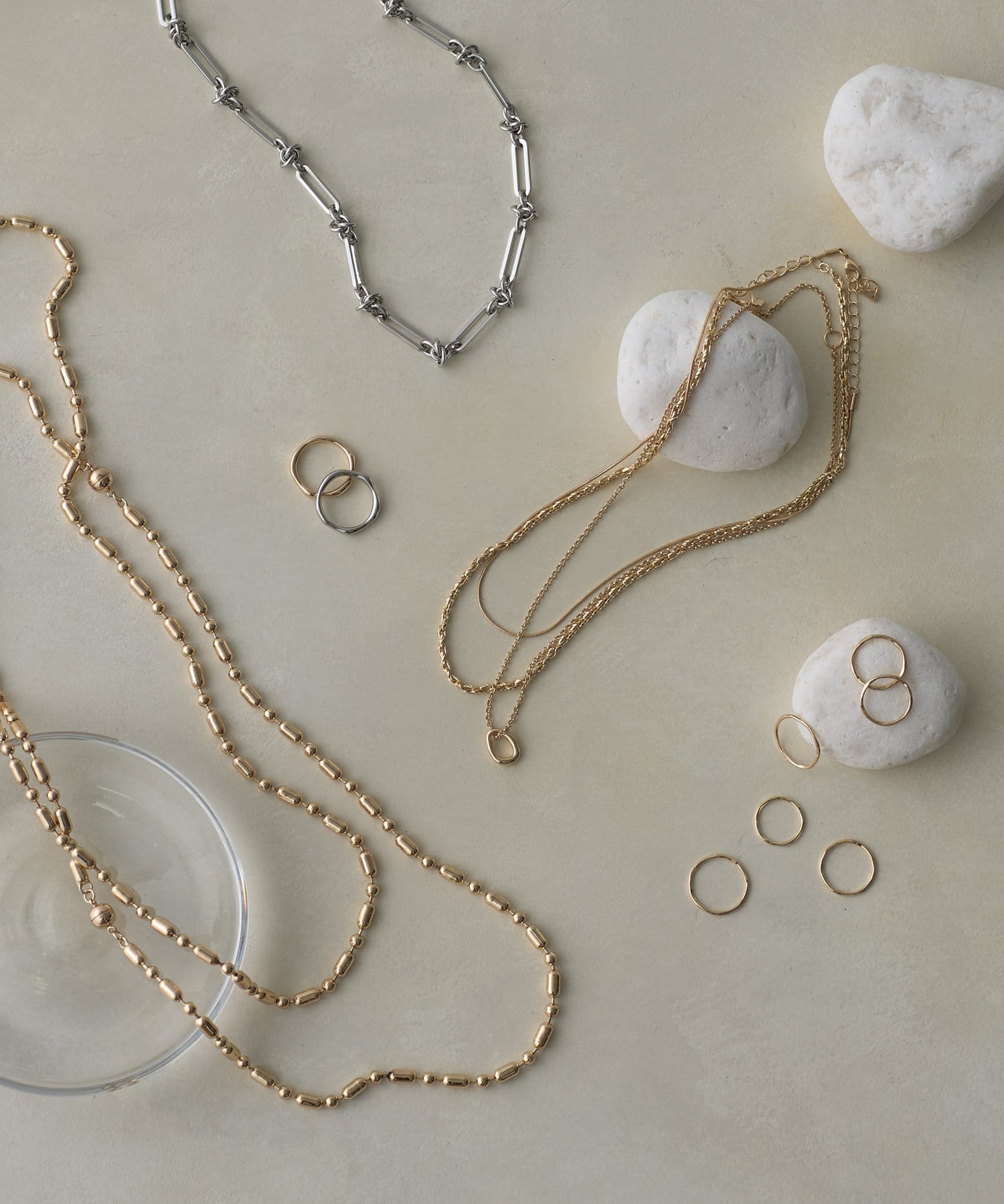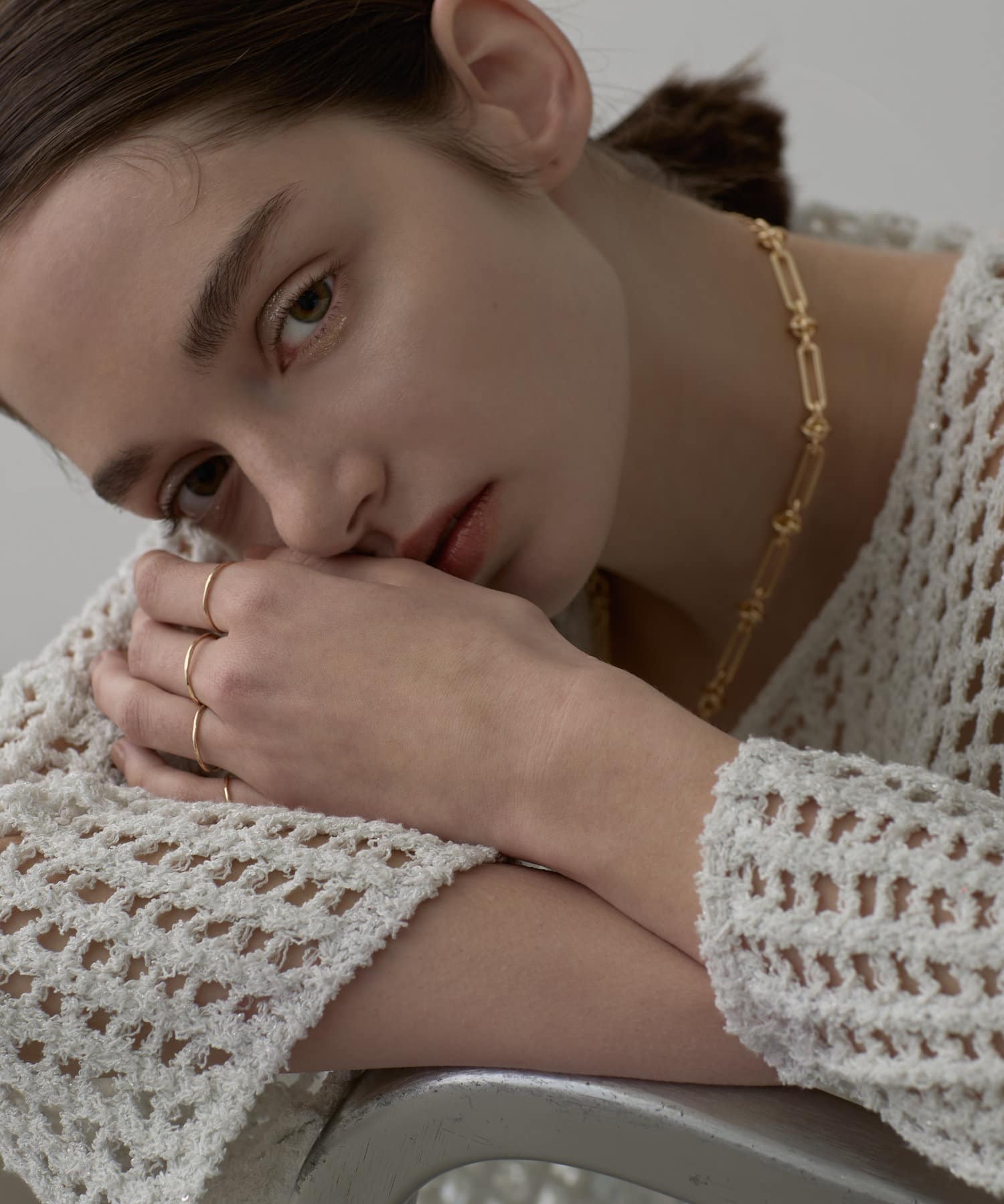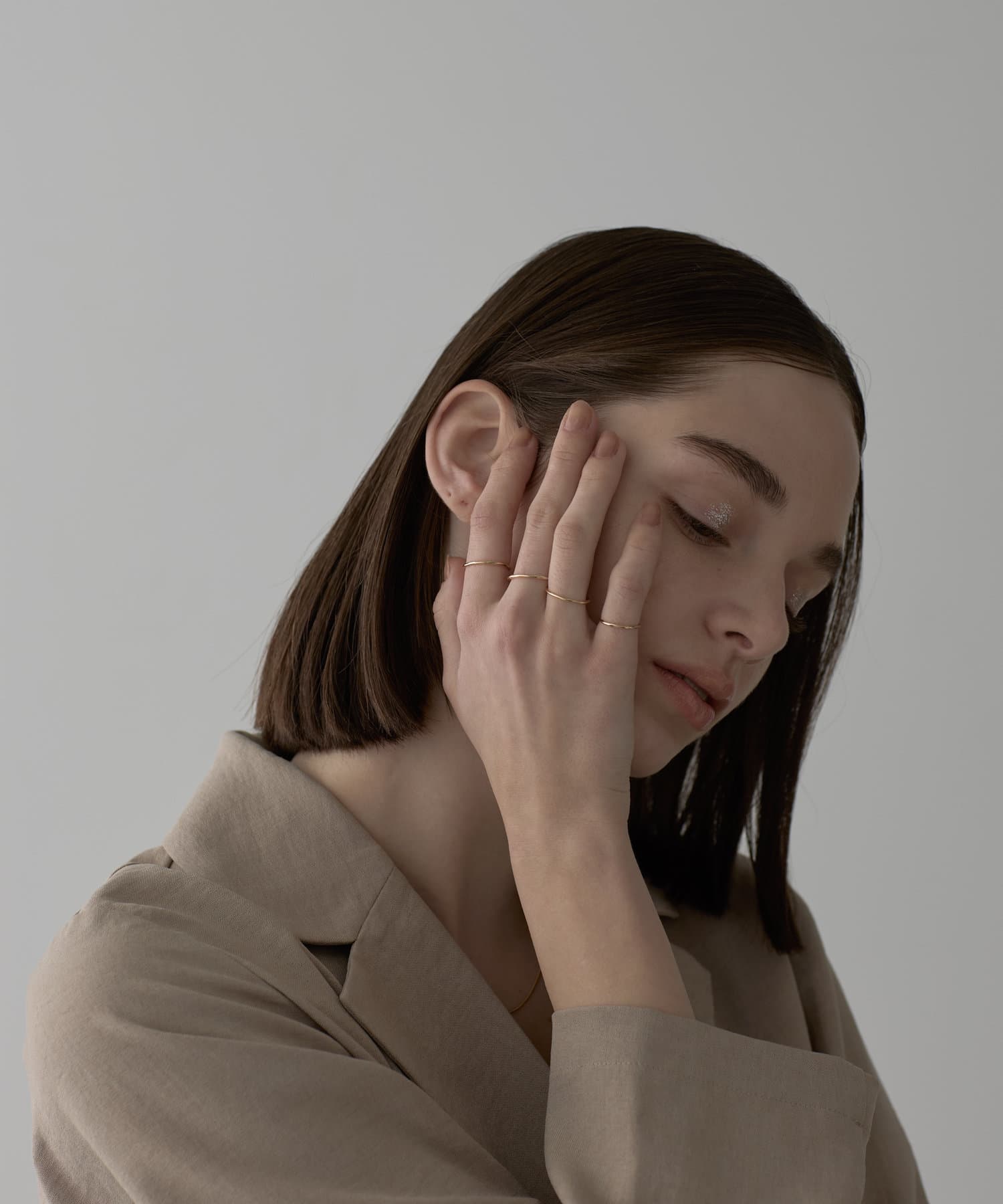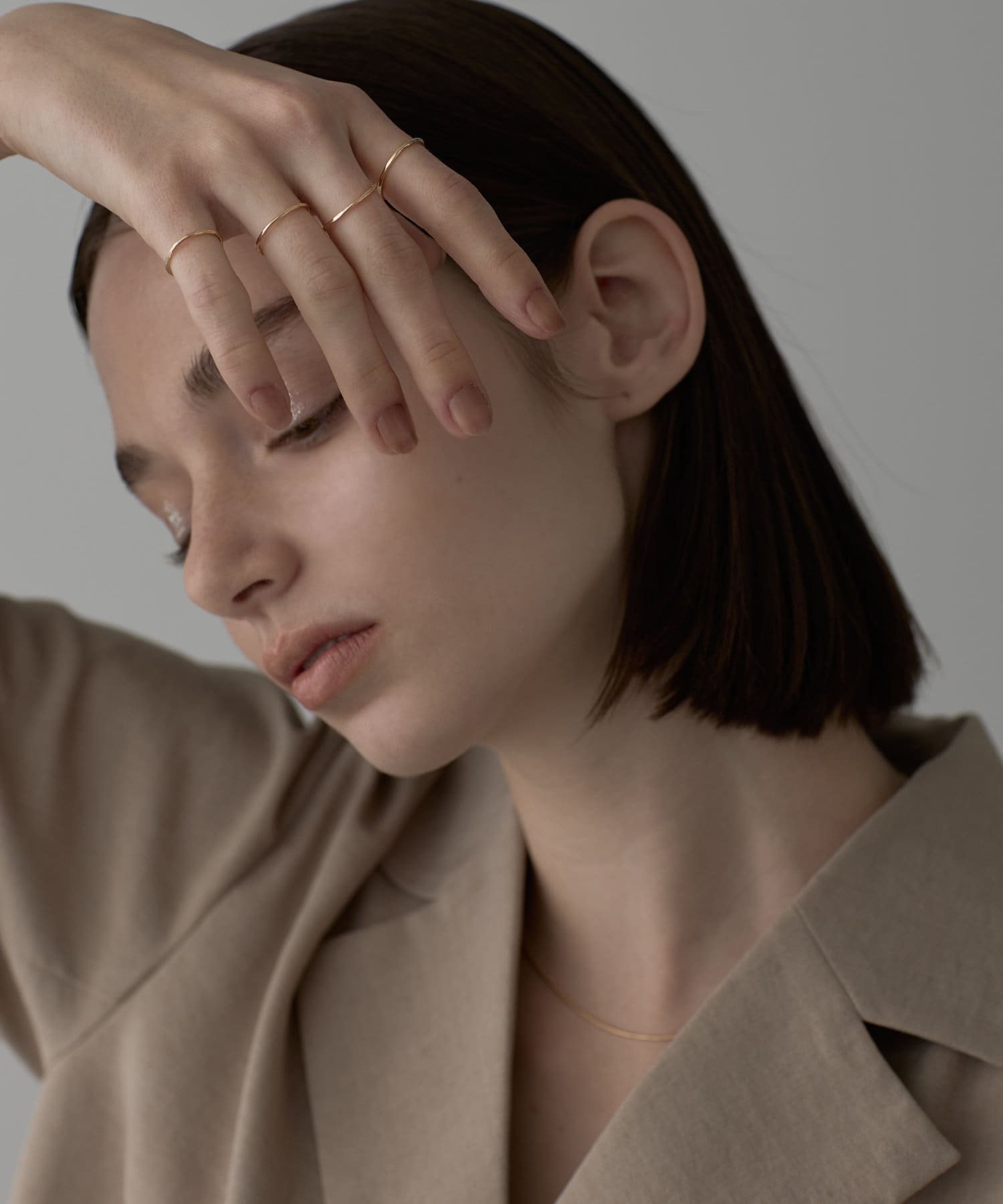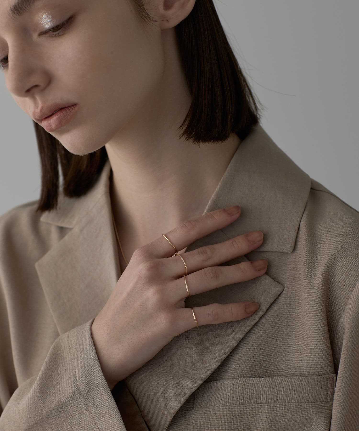華奢で凹凸感のあるオリジナルのデザインリングがどんなスタイリングにもマッチします。ニュアンスのある形がおしゃれ見えするアイテム。6つそれぞれサイズが異なり、単品使いや重ね付けなど様々な組み合わせが楽しめるセットリングです♪