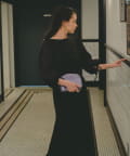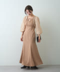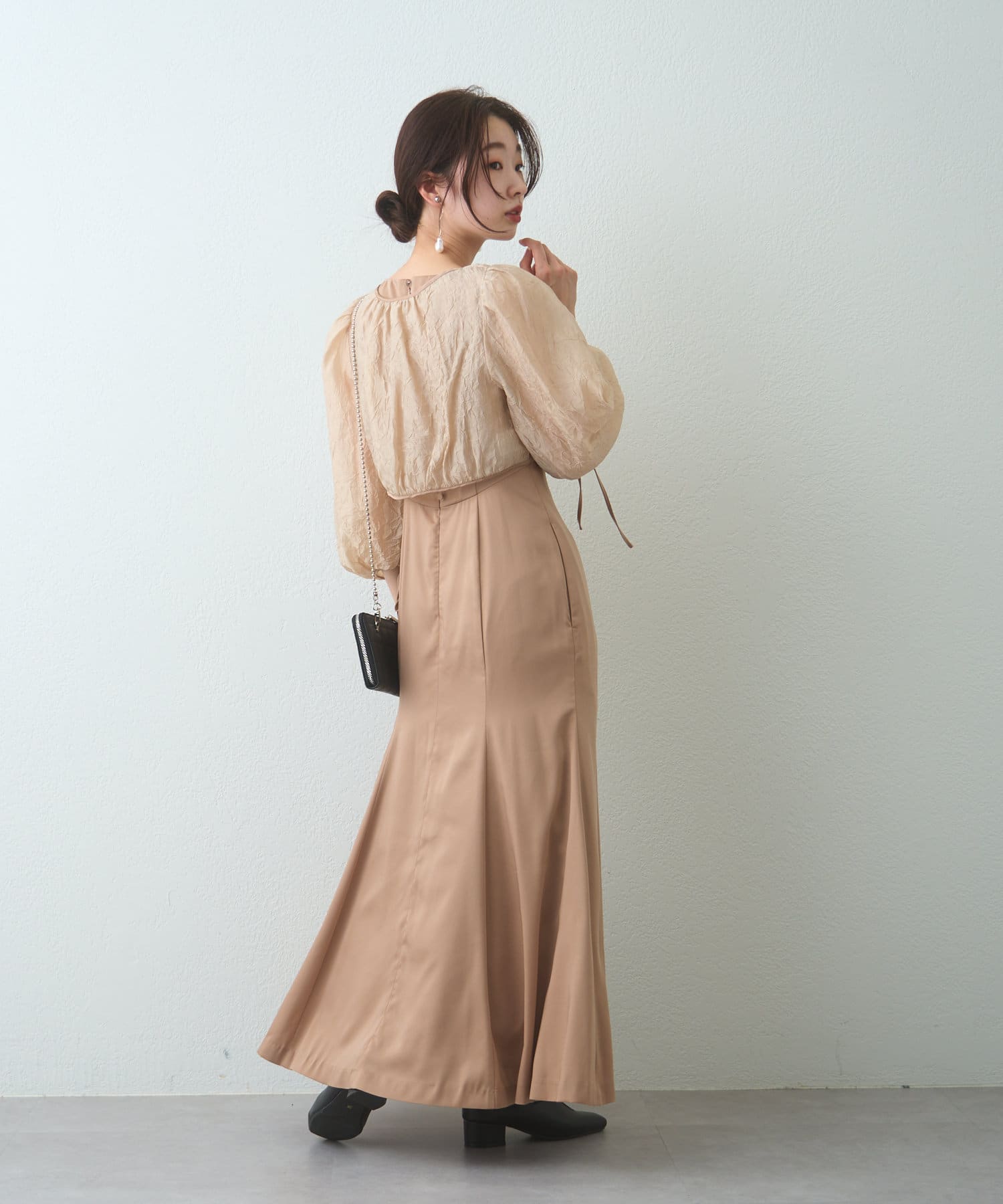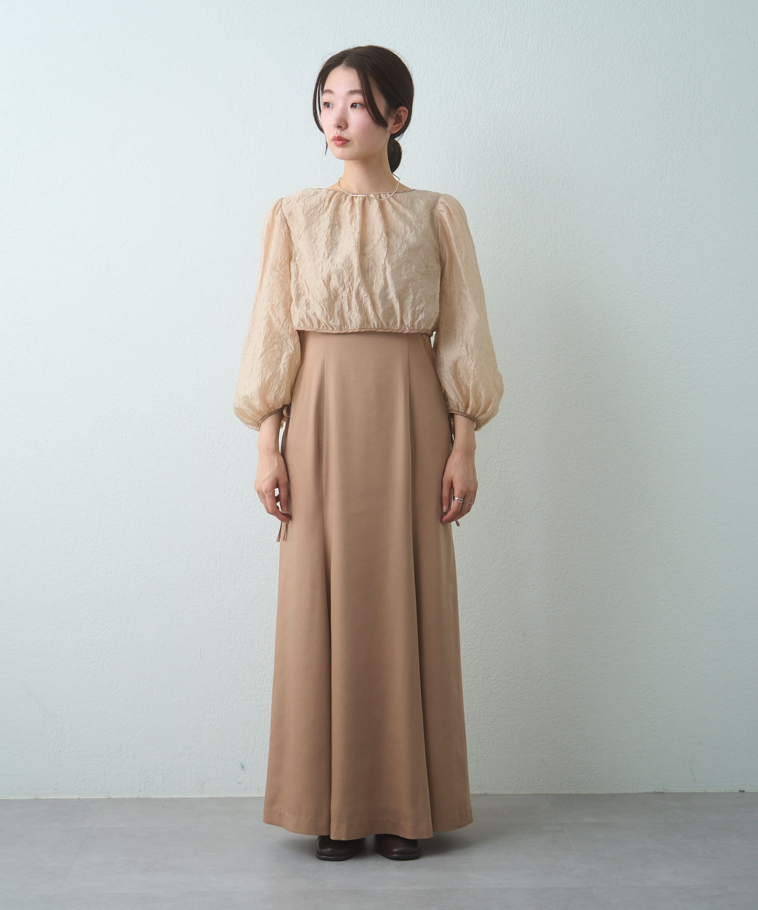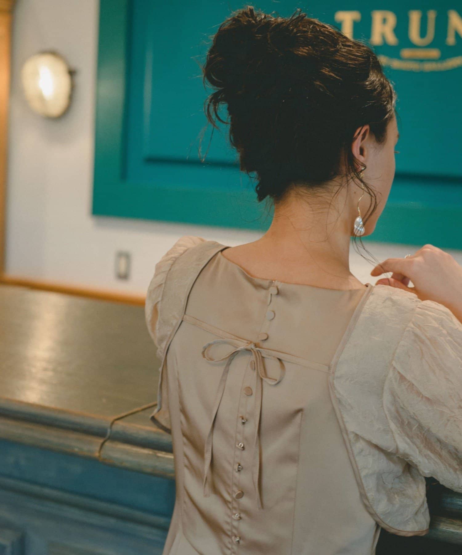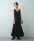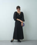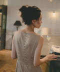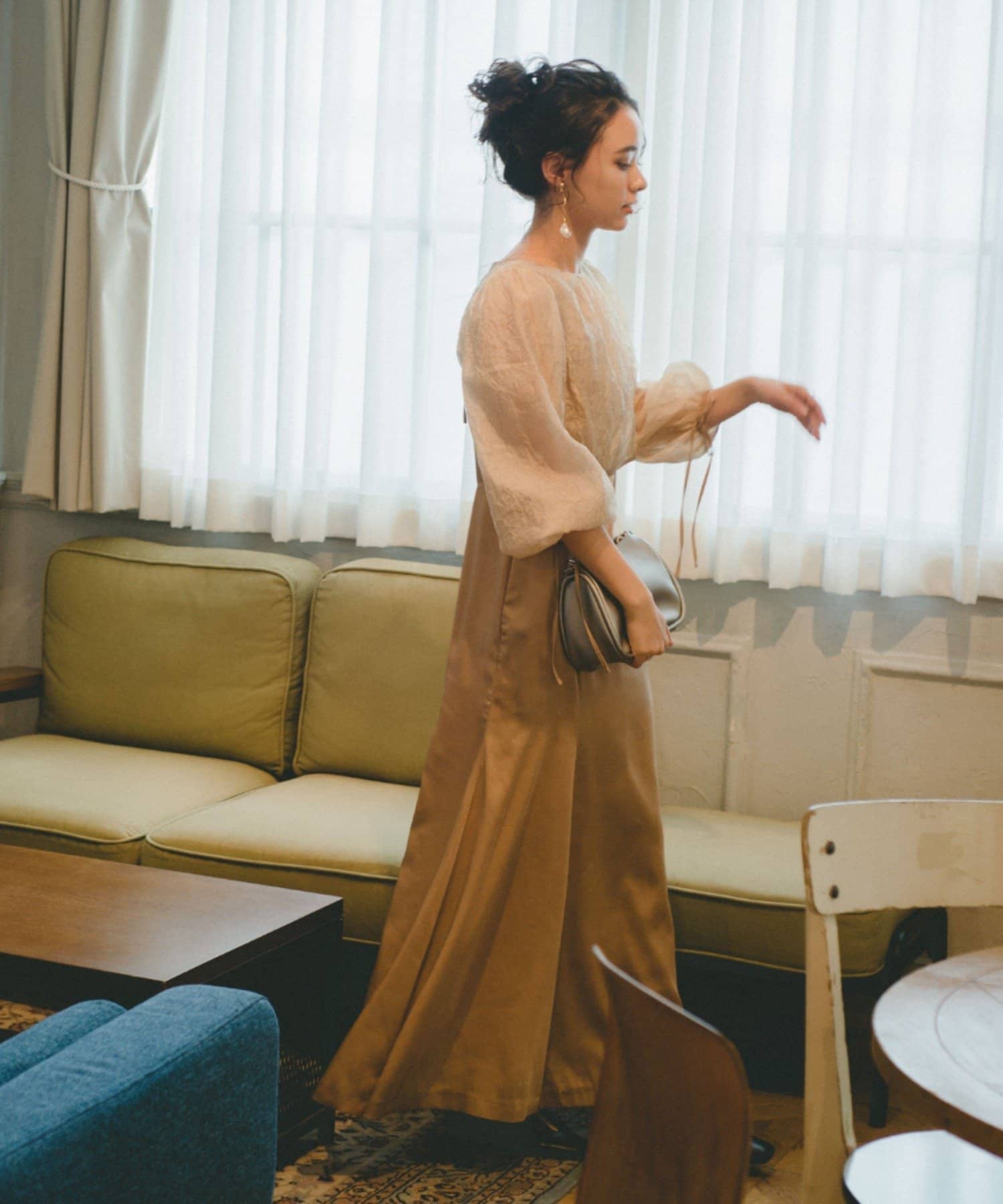 適度な光沢感が高見えし、一枚でも着用いただけるドレス。