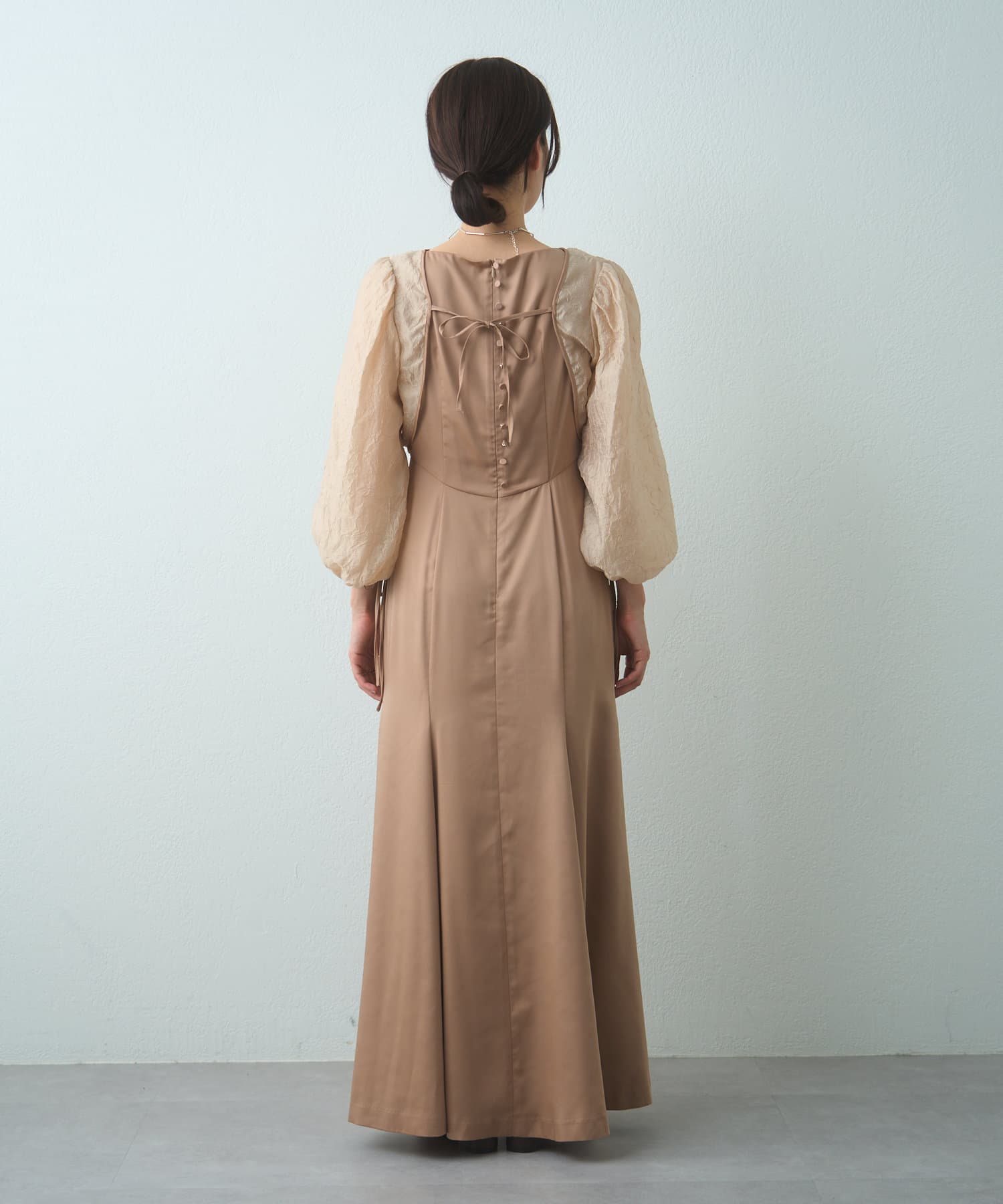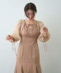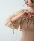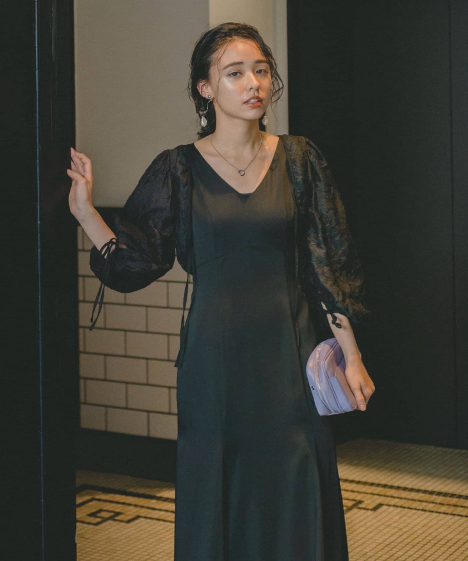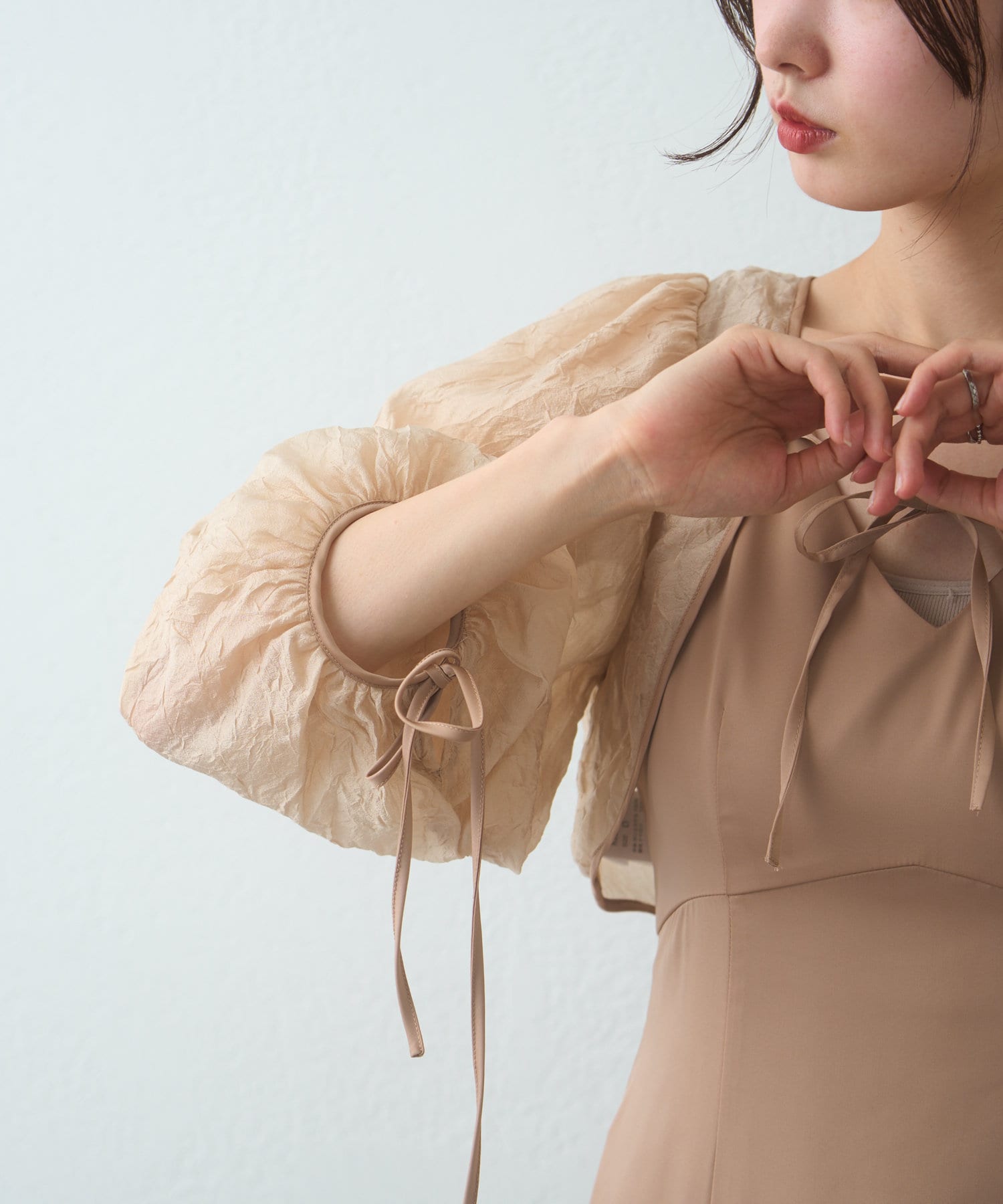 ボレロのリボンを前に、後ろに、ワンピース単品でも着用可能です。