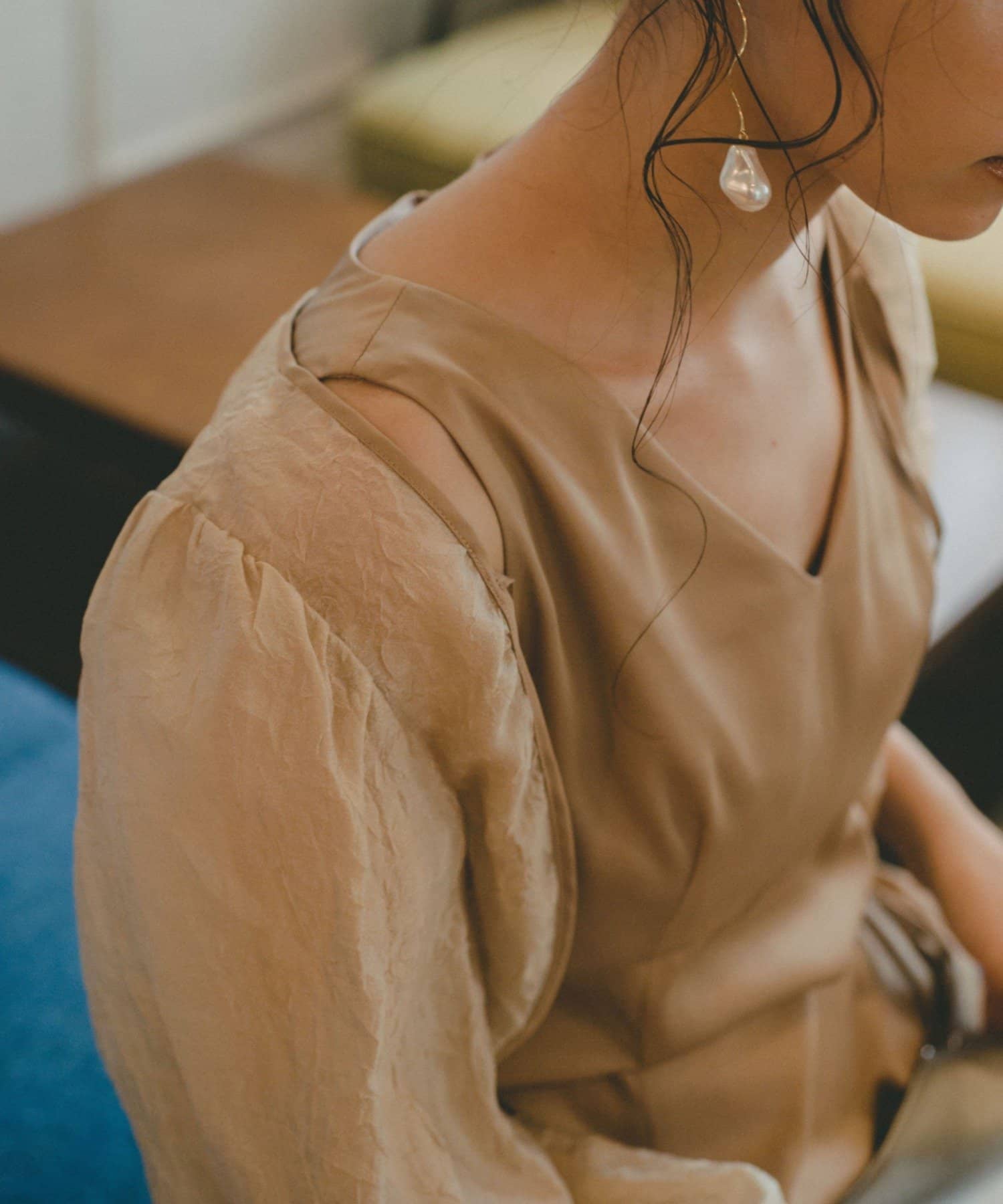 浅すぎず深すぎないVネックはデコルテを綺麗に見せてくれ、ネックレスとの相性も抜群。
