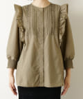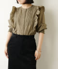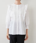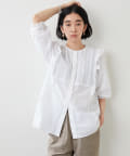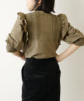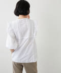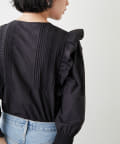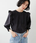 前後のピンタックと肩のフリルが目を惹くデザインブラウス。