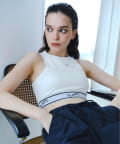・羽織のインナーに、ショートTOPSとのレイヤードに◎ロゴのチラ見せがアクセントに。