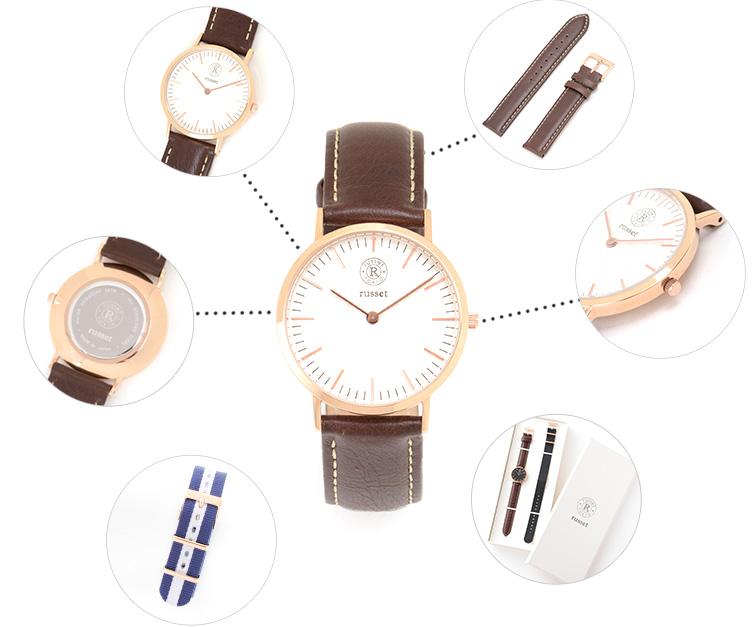 WEB限定アイテムの「russet WATCH」がついに登場!上品で洗練されたデザインを採用し、シーンや年齢・性別を問わずにお使いいただけるよう仕上げました。クラシックなイメージですが、細部にもこだわってデザインしており、綺麗目にもカジュアルにもお使いいただける優秀アイテムです。文字盤カラーが「ホワイト」と「ブラック」の2色展開です。