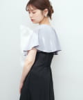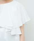 肩まわりを覆ったフリルは後ろまで配置され、ケープのようなデザインで二の腕をカバーしてくれるので、華奢見せ効果も期待できます。