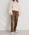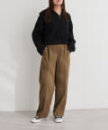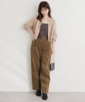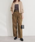 ボディラインを拾いにくくストンと落ちるストレートワイドシルエットのパンツ。