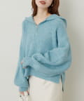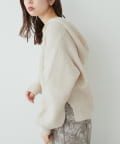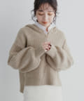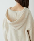 ゴールドのファスナーがポイントの、大人カジュアルなフード付きニット。