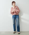 フロントがややショート丈なので、ハイウエストのボトムスと相性抜群。