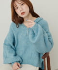ざっくりとした畦編みとボリュームスリーブで大人可愛くきまる1着です。