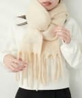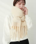 ふんわりとした肌触りとボリューム感が目を惹くボリュームフリンジマフラー。
