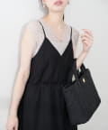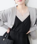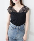 Vネックとスクエアネック、2つの顔が楽しめる華やかな印象のインナー。