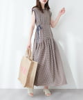 【WEB限定】ドロストデザインチェック柄ワンピース