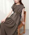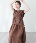 ウエストのドロストデザインがトレンドライクなノースリーブワンピース。