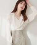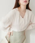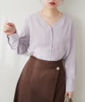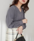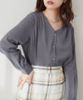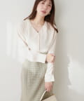 滑らかで落ち感のある着心地の良い生地に、フロントをパール釦使いに仕上げた、大人上品なブラウス。