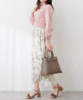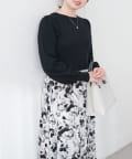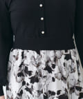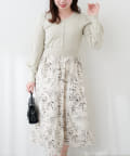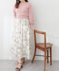 パール付ニットと花柄スカートをドッキングした大人フェミニンなワンピース。