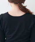 前後2way仕様で、パール装飾側はデコルテがヘルシ見えするVネックデザイン。装飾の無い側はUネックで、