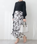 ニットとメリハリの出るスカートは、ひらっと動くフェニミンムードな花柄を使用しました。