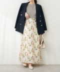 シンプルなハイネックニットやすっきりめのブラウスを合わせると、スカートのデザインが引き立ちます。