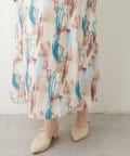 アート柄を全体にデザインし、裾にかけて緩やかなフレアラインに仕上げた、履くだけでお洒落感が増す1着。
