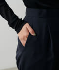 程よく肉感のある素材で脚のラインを拾わず、ウエスト位置もやや高めに設定することで、スタイルアップが叶う一枚です。