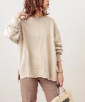 オールシーズン活躍するスウェットが登場。生地にはコットン100%使用し、さらりとした生地感で着心地がよくご自宅でのお洗濯も問題なし◎。また、フロントにクールな「 BIENHEUREUX 」のロゴはフランス語で「恵まれた」「幸福な」という意味があります。同色系フロッキーと薄ゴールド箔で上品に仕上げました。BODYは腰回りも隠れる安心丈。裾のカットオフと長めの袖丈がおしゃれな抜け感を演出。定番で長い期間楽しめるスウェットは、中にシャツやタートルネックを合わせるだけで雰囲気が変わり着回し力抜群です。ワイドパンツやリブパンツを合わせは勿論、ロングスカートに合わせのコーディネートもおすすめ。お色は定番カラーから、スモーキーカラーの4色ご用意しました。