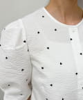 大人可愛いコットンリップルハート刺繍ブラウス