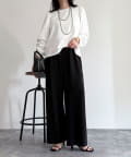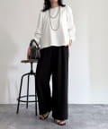 ・カットソーですが、ブラウス見えするのでしっかり感もありつつ綺麗めのコーデでも合わせられるアイテムです