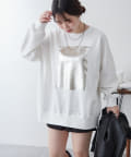 ・フロントには箔プリントが施されており、キレイめカジュアルなおとなかわいいスタイリングがかないます。