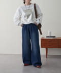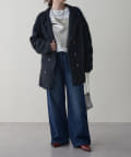 ・ゆったりとしたシルエットなので、ボトムスはシンプルですっきりとしたアイテムが好相性◎