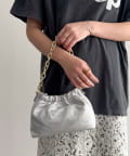 【AULENTTI/オーレンティ】チェーンギャザーレザーショルダーバッグ