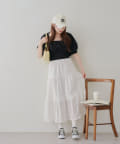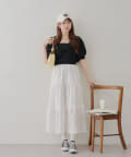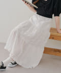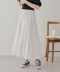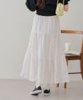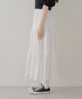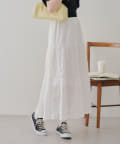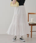 コットン使用で涼しげ感漂うレースティアードスカート!
